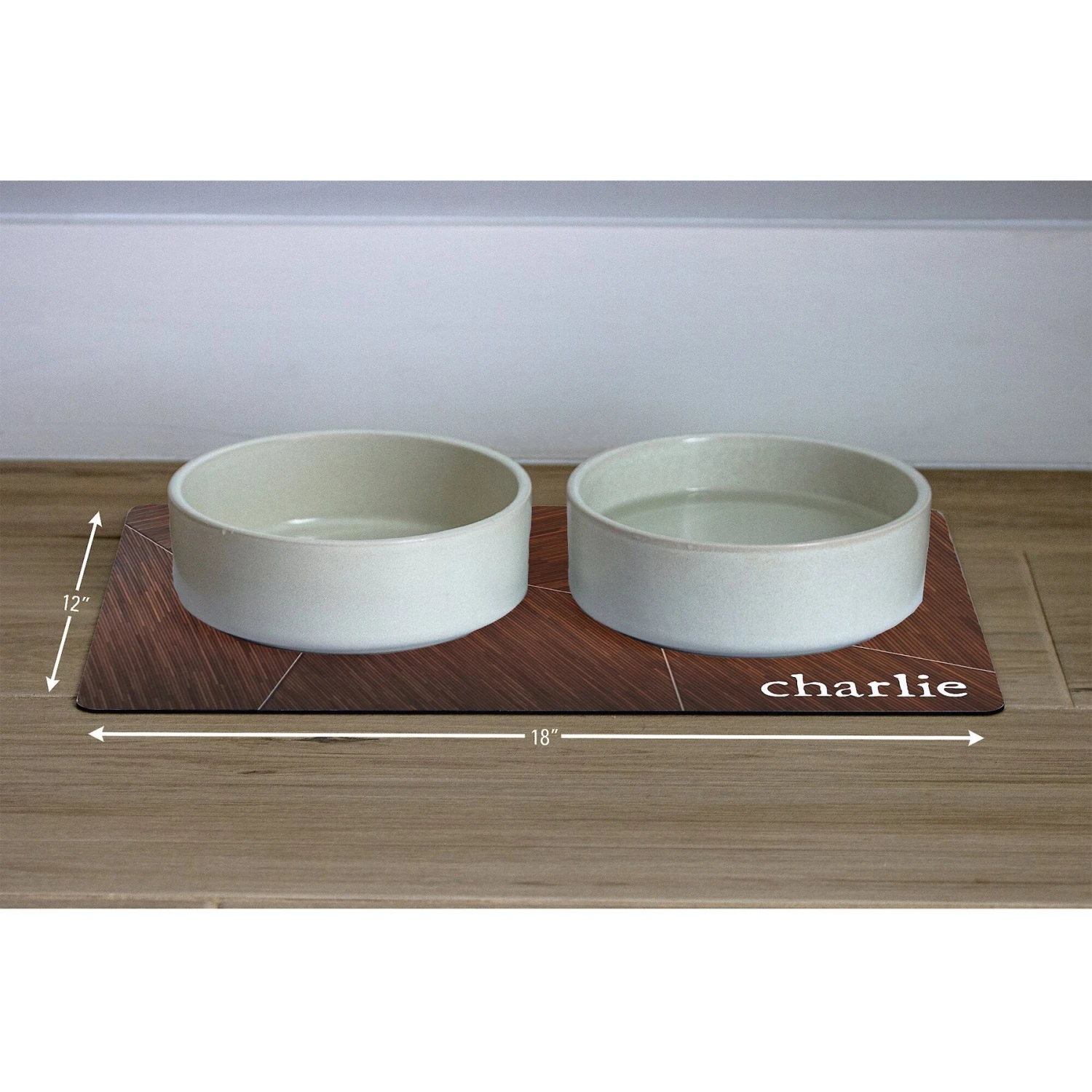 904 Custom Personalized Modern Geometric Woodgrain Dog & Cat Placemat