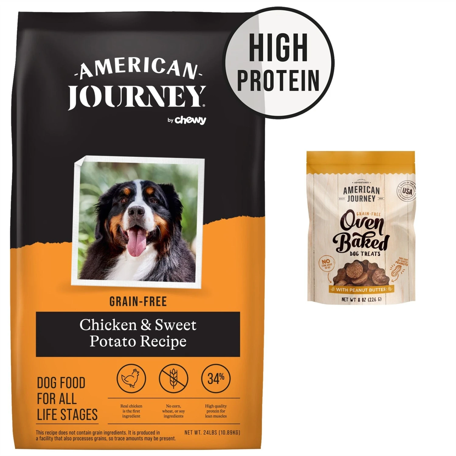 American Journey Chicken & Sweet Potato Recipe Grain-Free Dry Dog Food & American Journey Peanut Butter Recipe Grain-Free Oven Baked Crunchy Biscuit Dog Treats