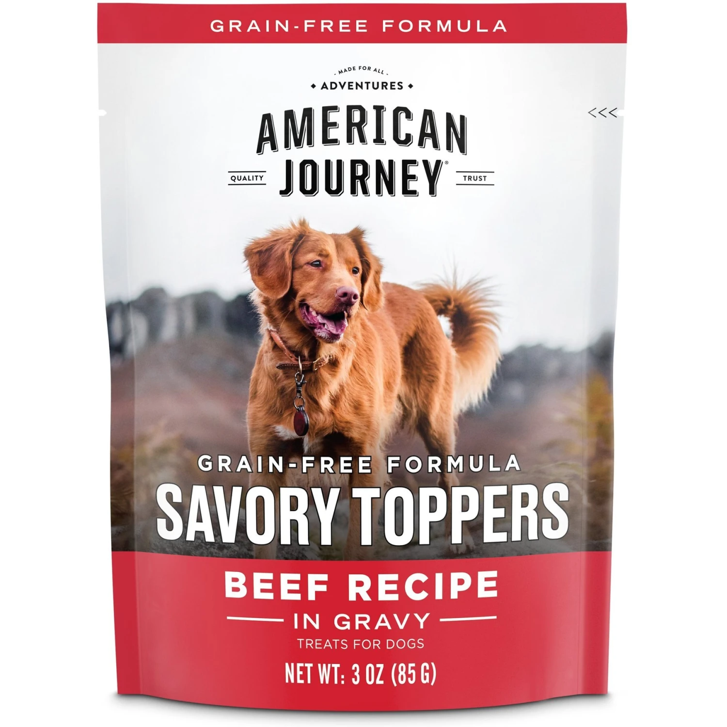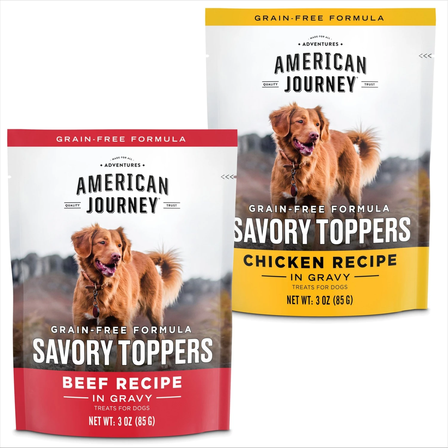 American Journey Savory Toppers Beef Recipe In Gravy Grain-Free Dog Food Topper, 3-oz Pouches, Case Of 24 & American Journey Savory Toppers Chicken Recipe In Gravy Grain-Free Dog Food Topper, 3-oz Pouches, Case Of 24