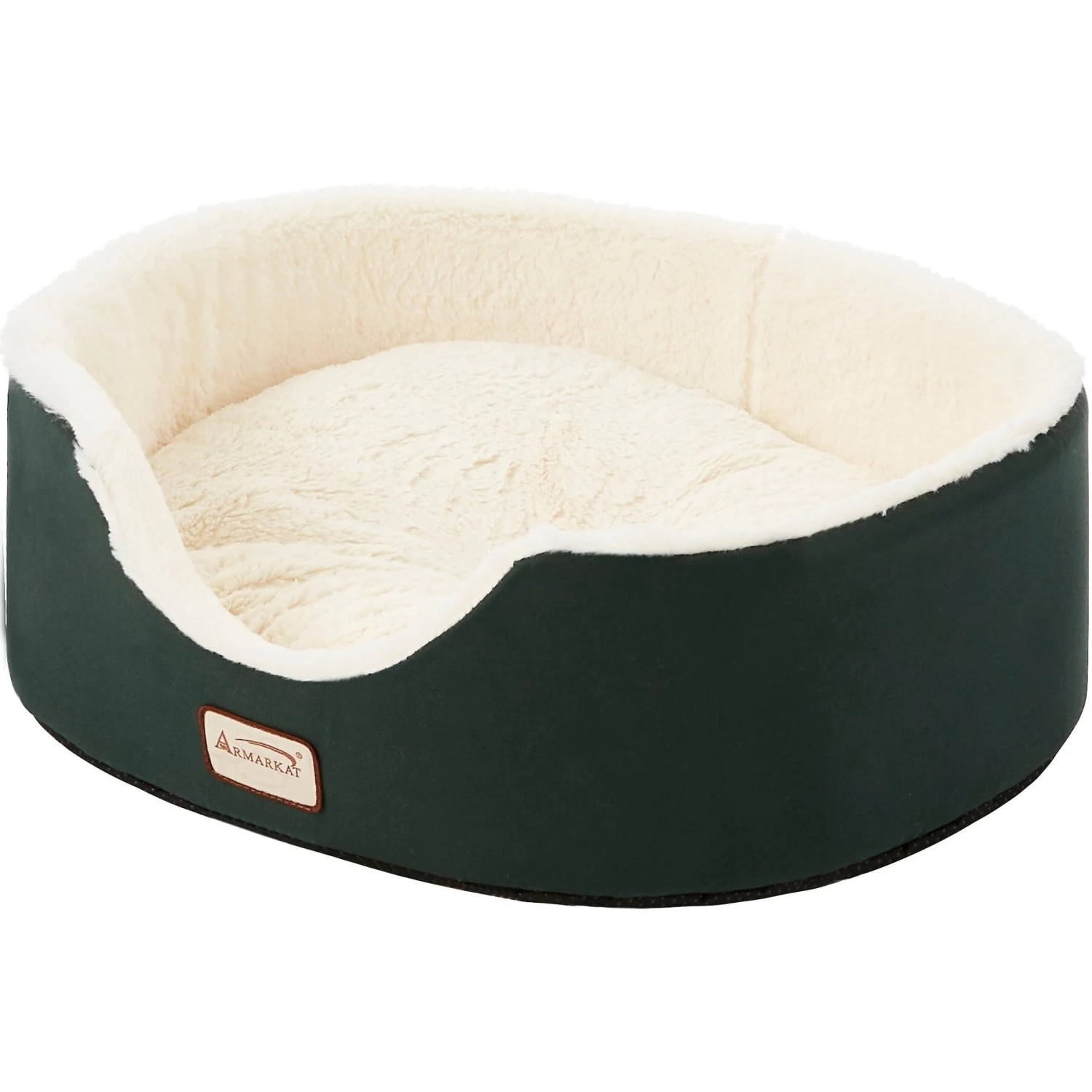 Armarkat Oval Bolster Cat & Dog Bed, Laurel Green/Ivory