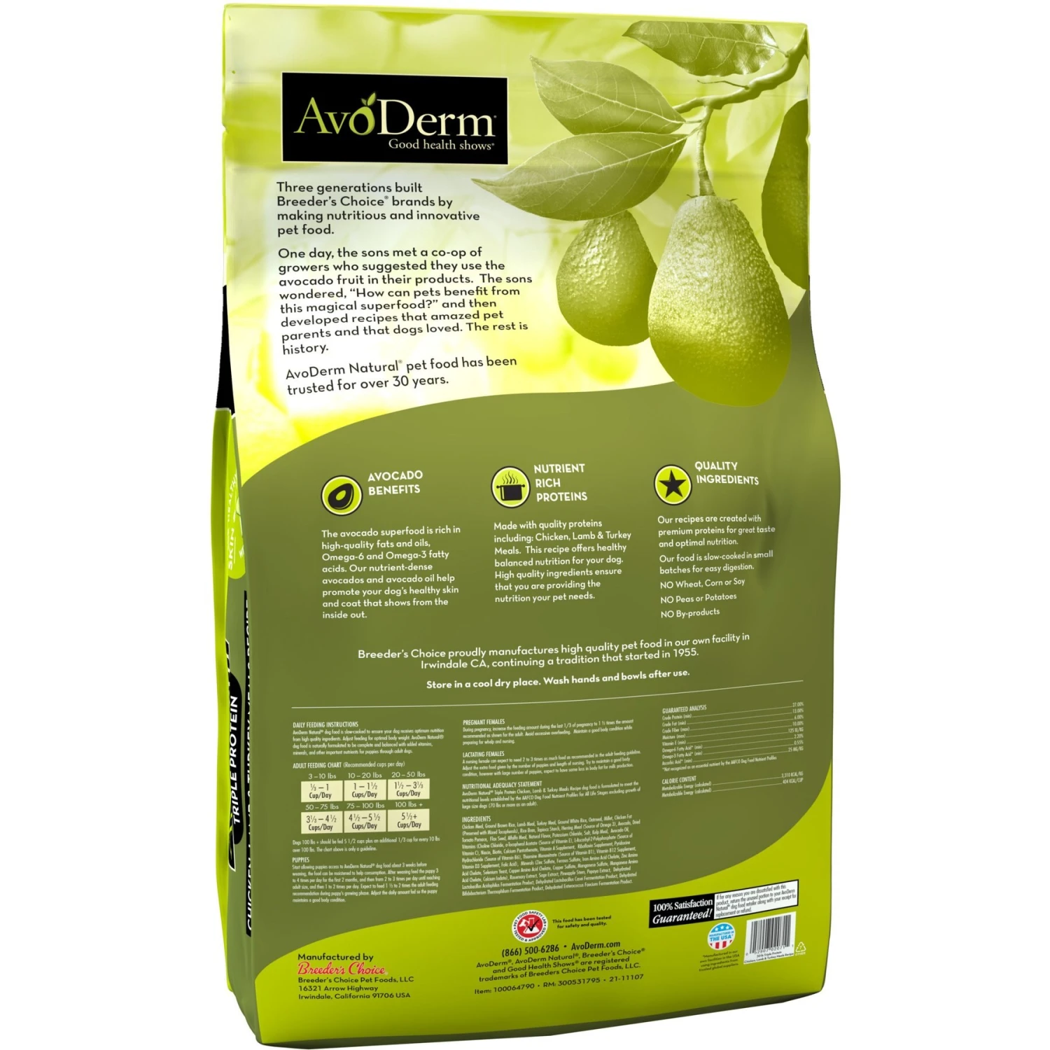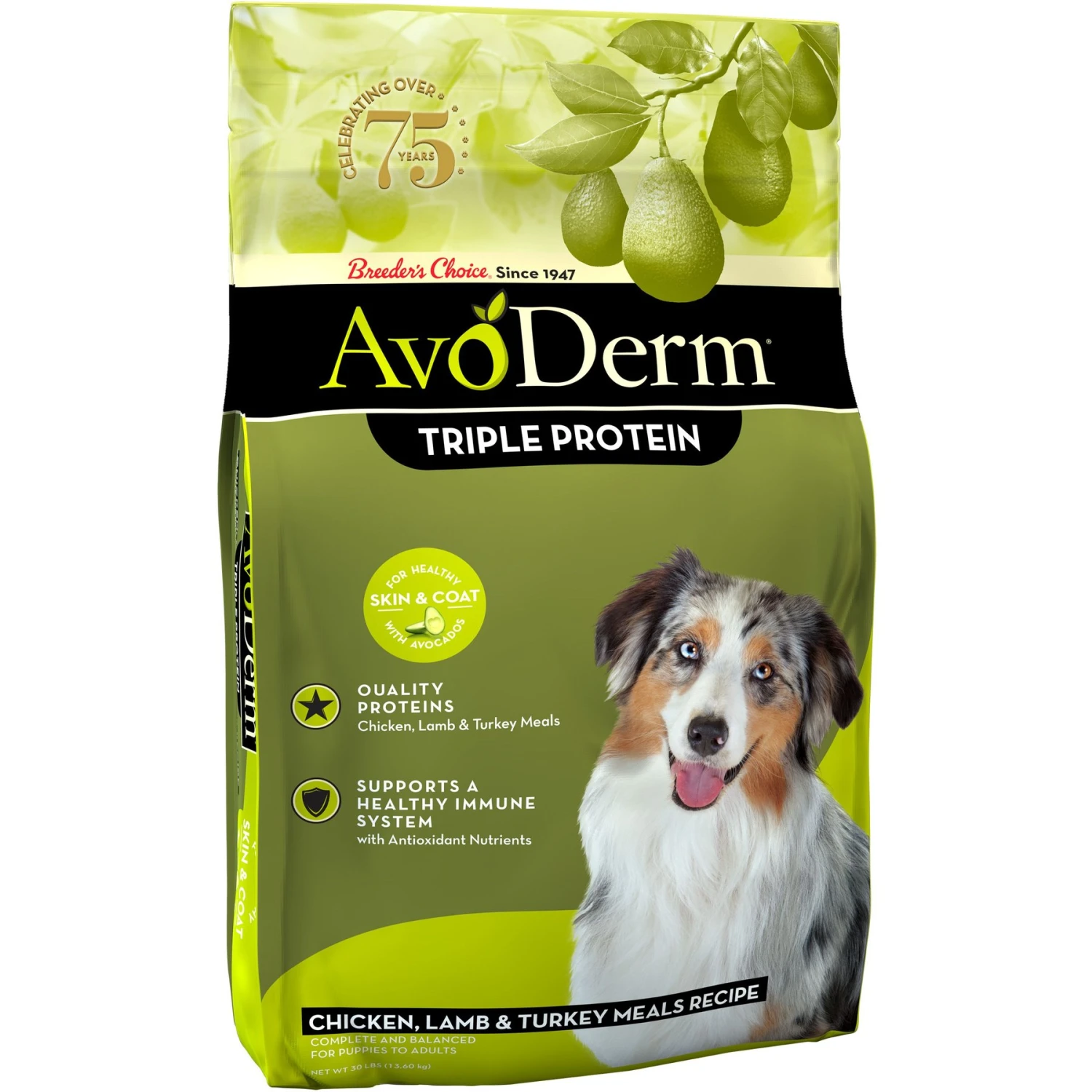 AvoDerm Natural Triple Protein Chicken, Lamb & Turkey Meals Recipe All Life Stages Dry Dog Food