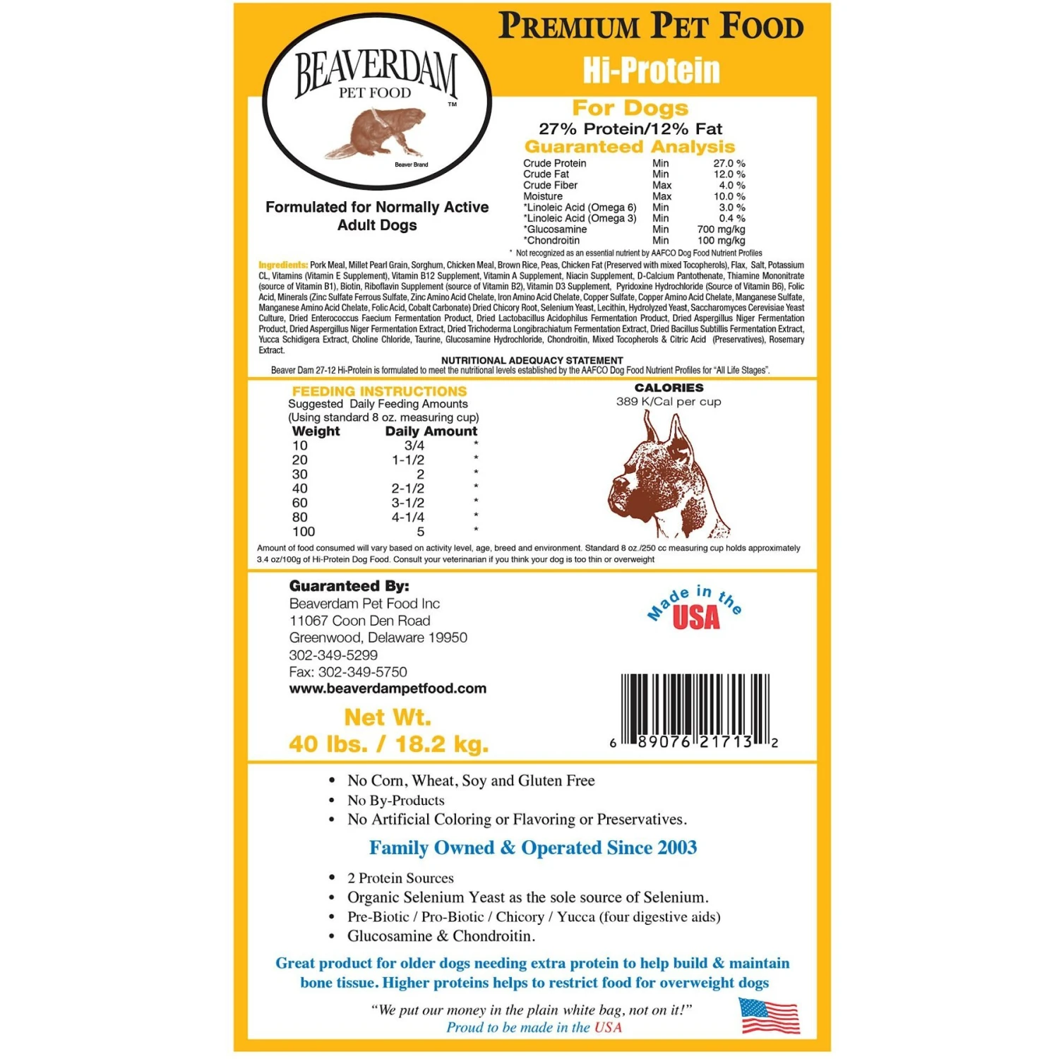 Beaverdam Pet Food Hi-Protein 27/12 Dry Dog Food