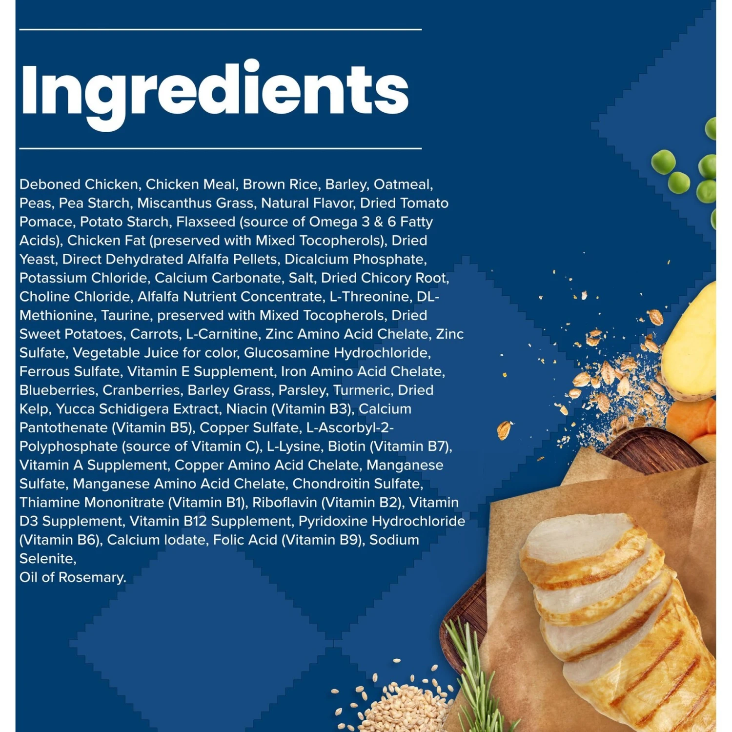 - Glucosamine and chondroitin for joint health and mobility and Omega 3 and 6 fatty acids for healthy skin and coat.