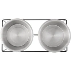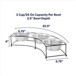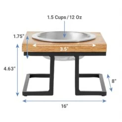 Frisco Premium Wood Elevated Stainless Steel Double Diner Dog & Cat Bowl, Black, 3 Cup