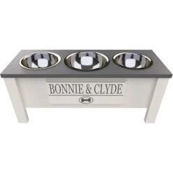 GrooveThis Woodshop Personalized 3 Bowl Elevated Dog Feeder Station With Internal Storage
