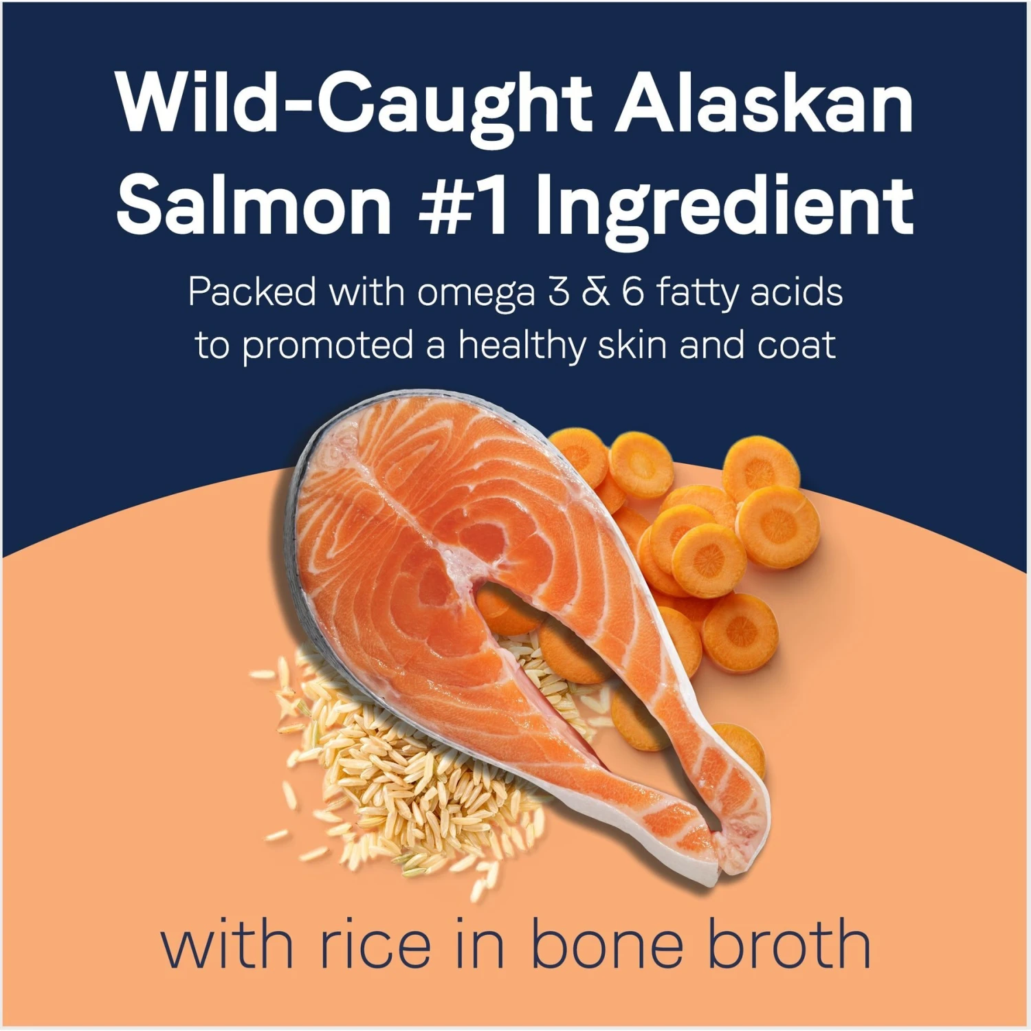 - Cooked with wild-caught Alaskan Salmon, a highly digestible protein source, rich in omega-3 fatty acids to support healthy skin and coat.