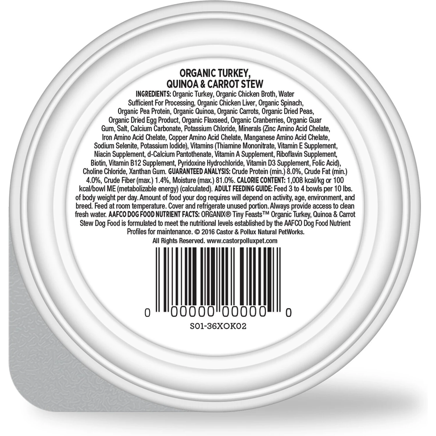 Castor & Pollux Organix Tiny Feasts Organic Turkey, Quinoa & Carrot Stew Dog Food Trays
