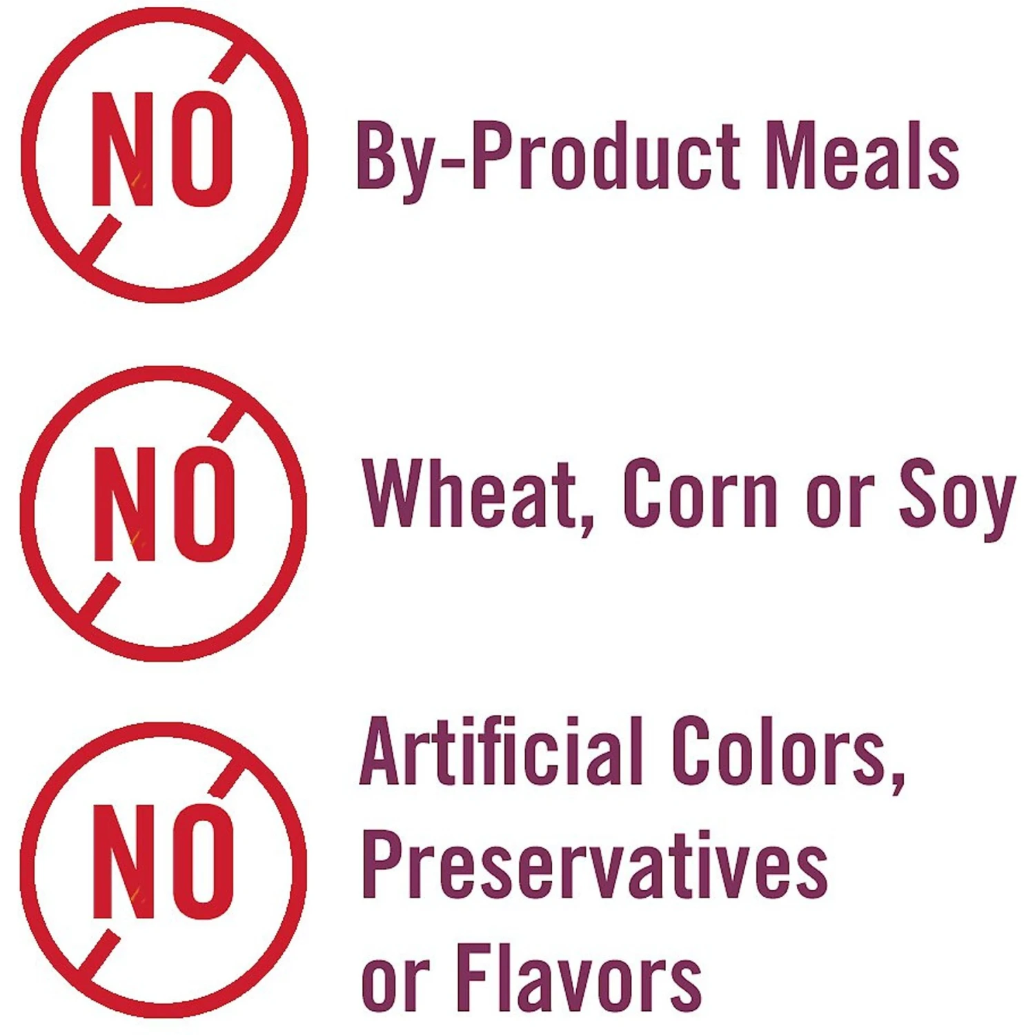 - Contains no by-product meals, corn, wheat, soy, artificial coloring, flavoring or preservatives.