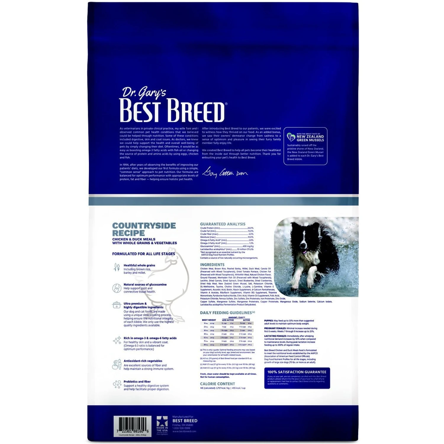 - Chicken and duck provide premium protein sources while glucosamine from green-lipped sea mussels support mobility and joint health