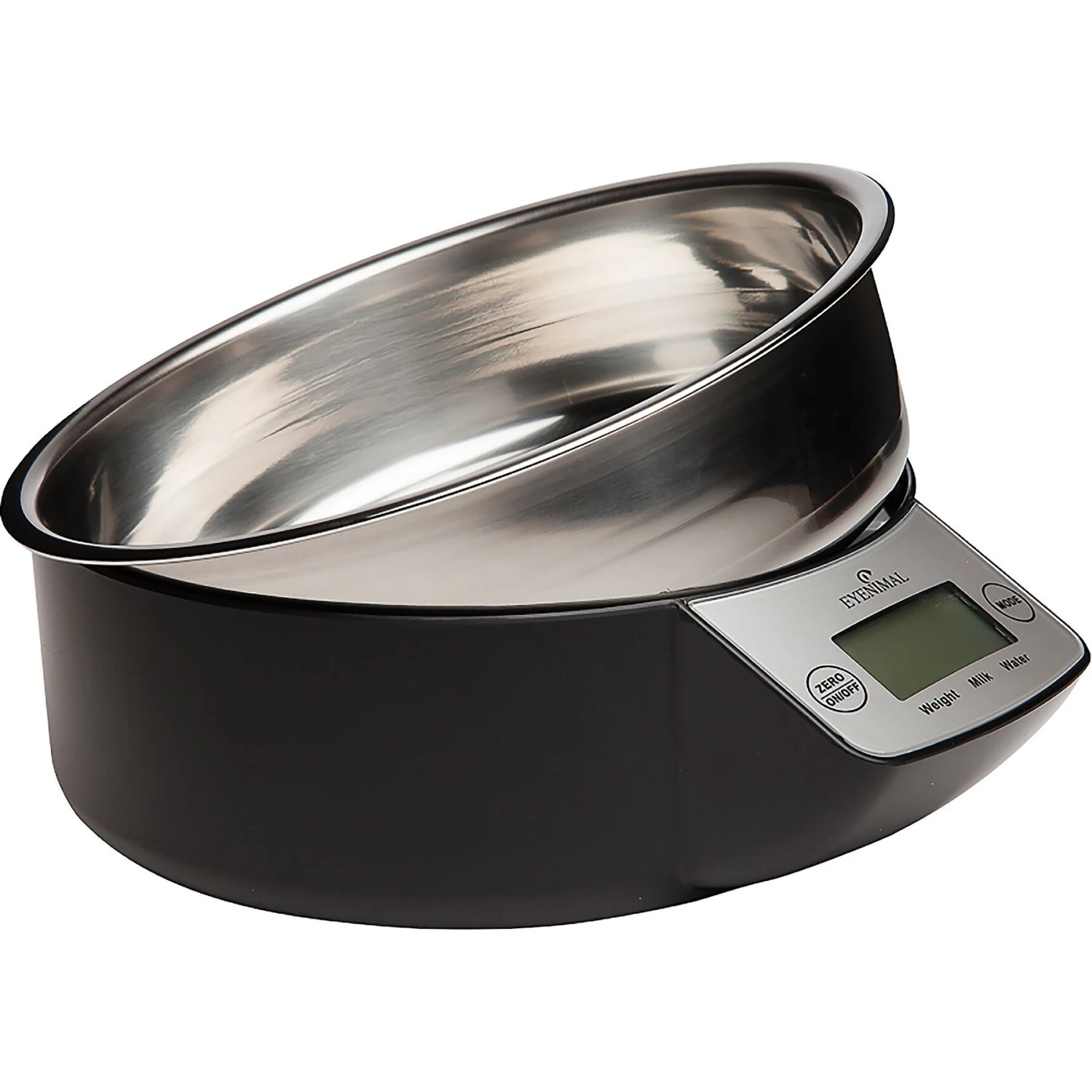 - Electronic scale precisely measures food in pounds, grams, ounces, fluid ounces and milliliters.