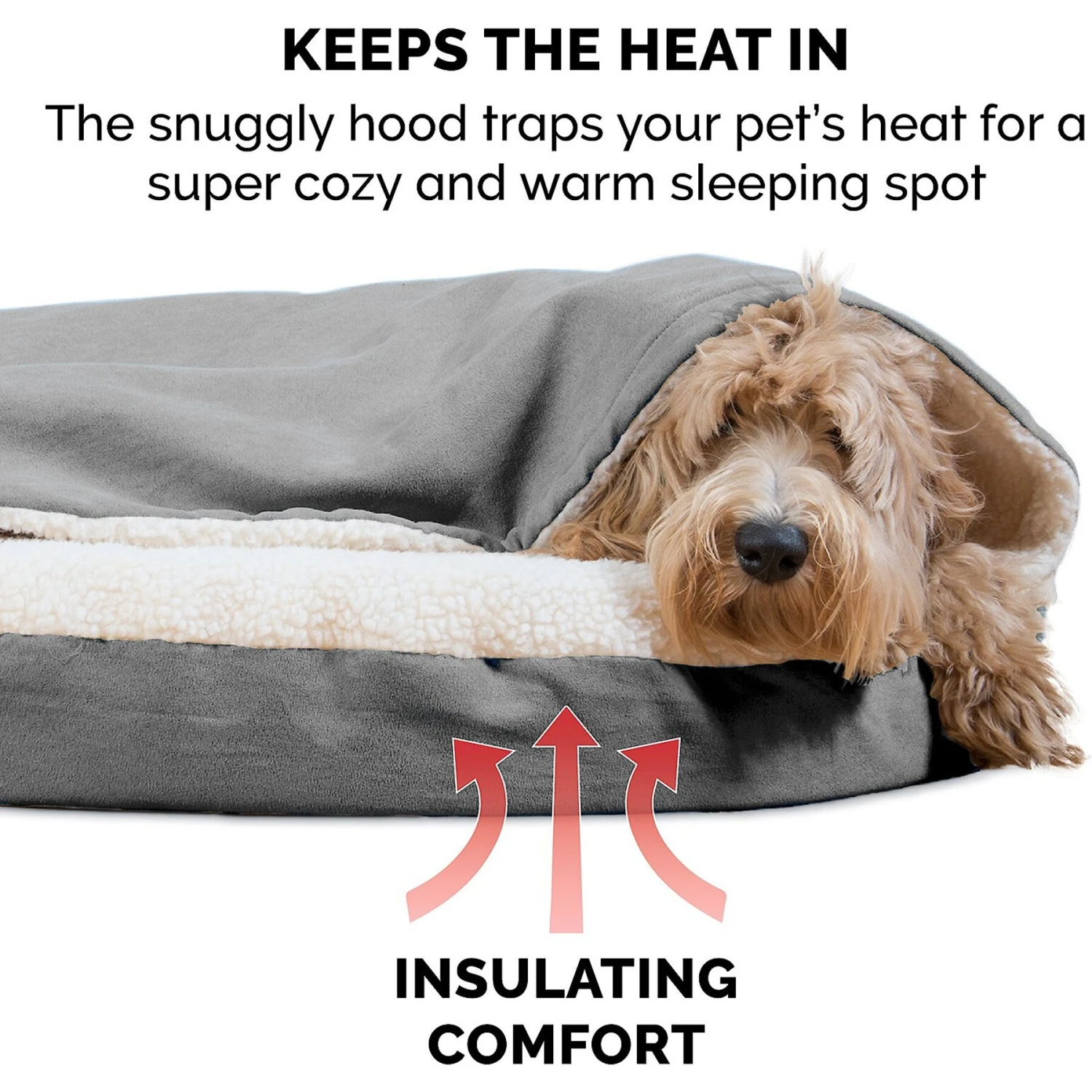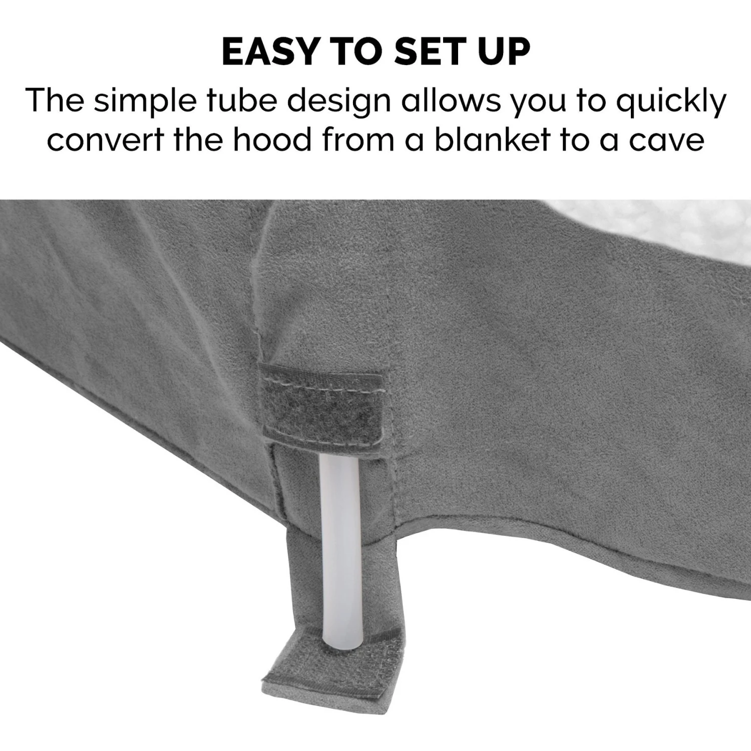 - Features a soft hood with a flexible and removable hoop to let your paw-tner snuggle and burrow or use it as a blanket.