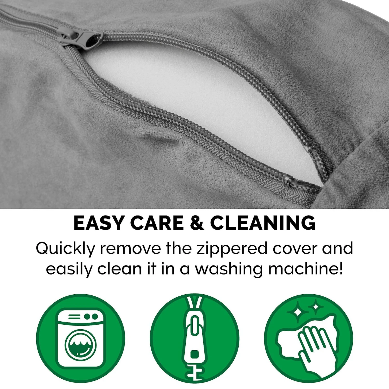 - Includes a zippered, removable cover that is machine washable.