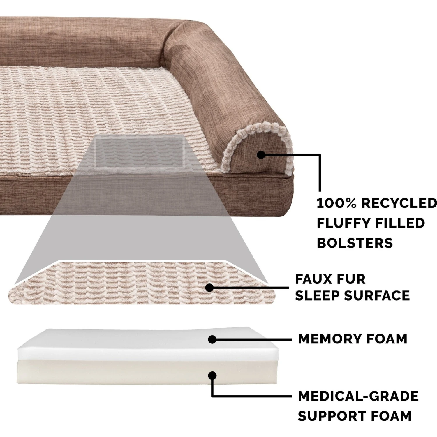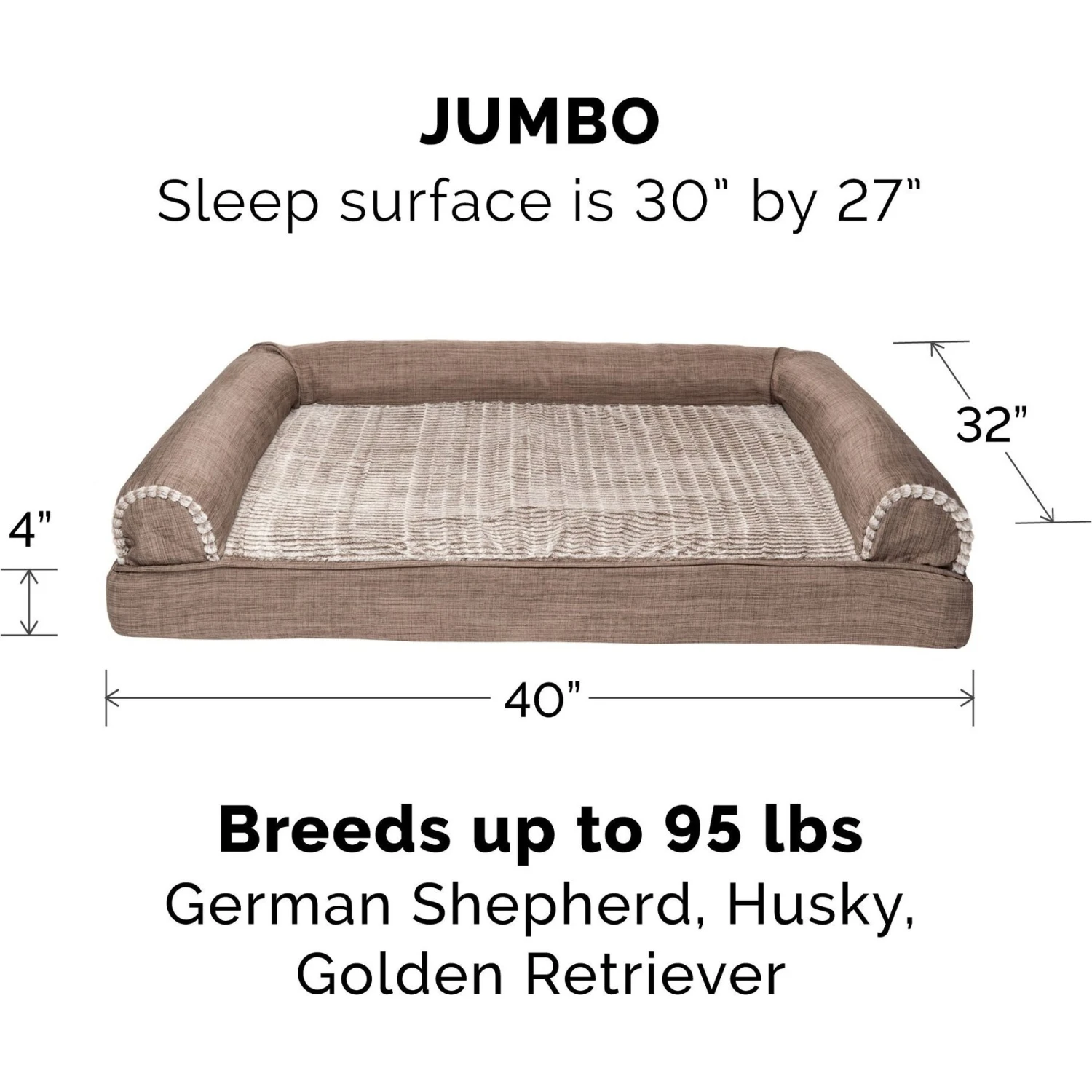 FurHaven Luxe Fur & Performance Linen Memory Top Sofa Cat & Dog Bed With Removable Cover