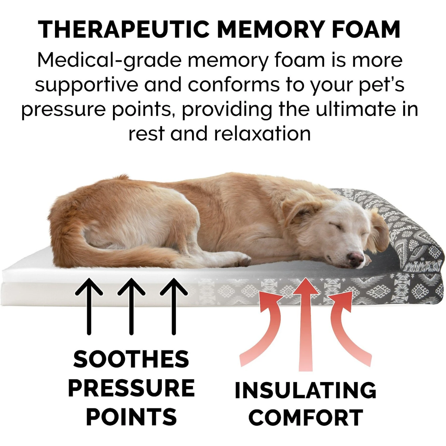 - The memory foam base is designed to contour to your furry friend’s body to soothe aching joints and pressure points.