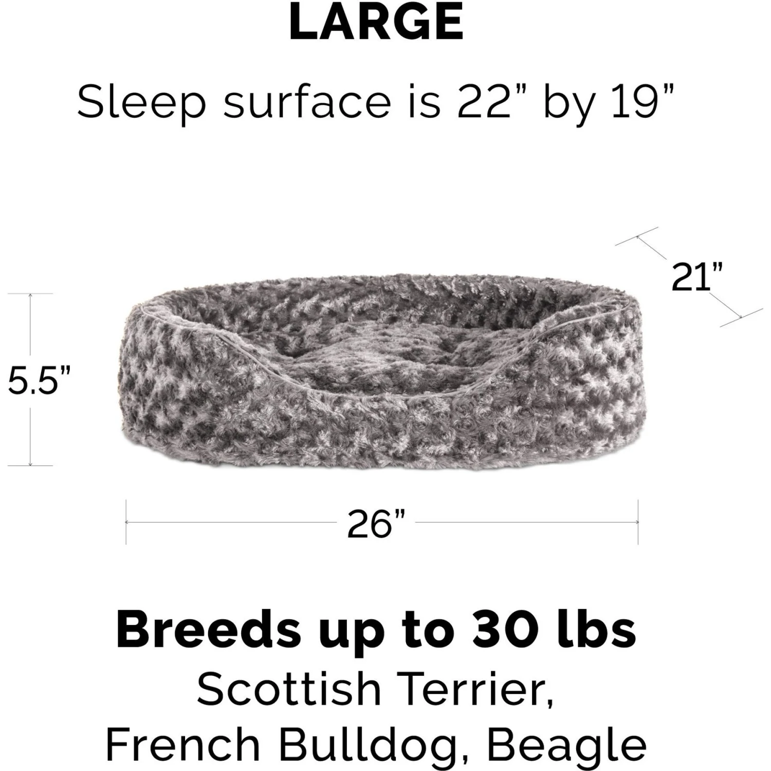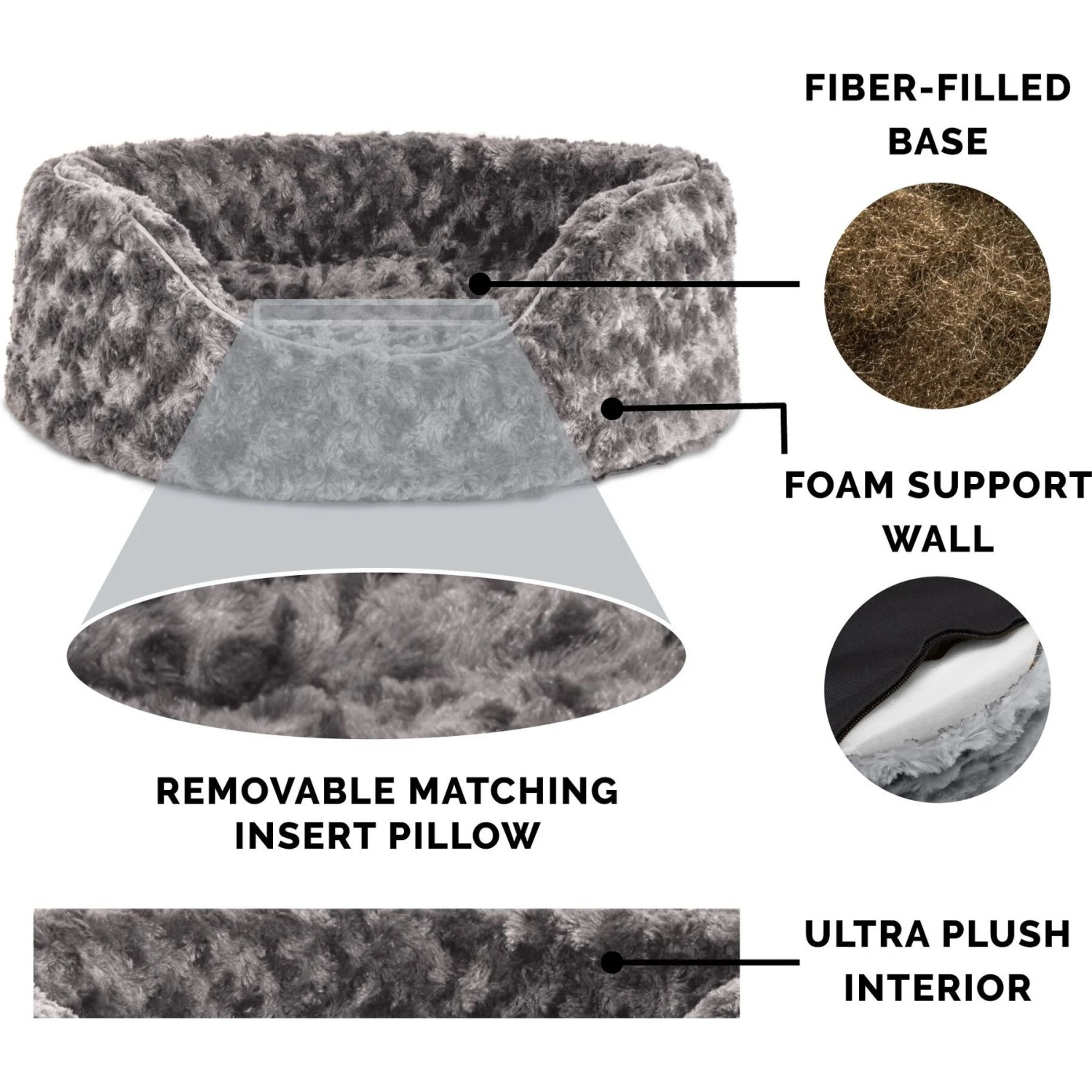 - Features comfy walls for support, a tufted, fiber-filled pillow cushion, and ultra-soft surface.