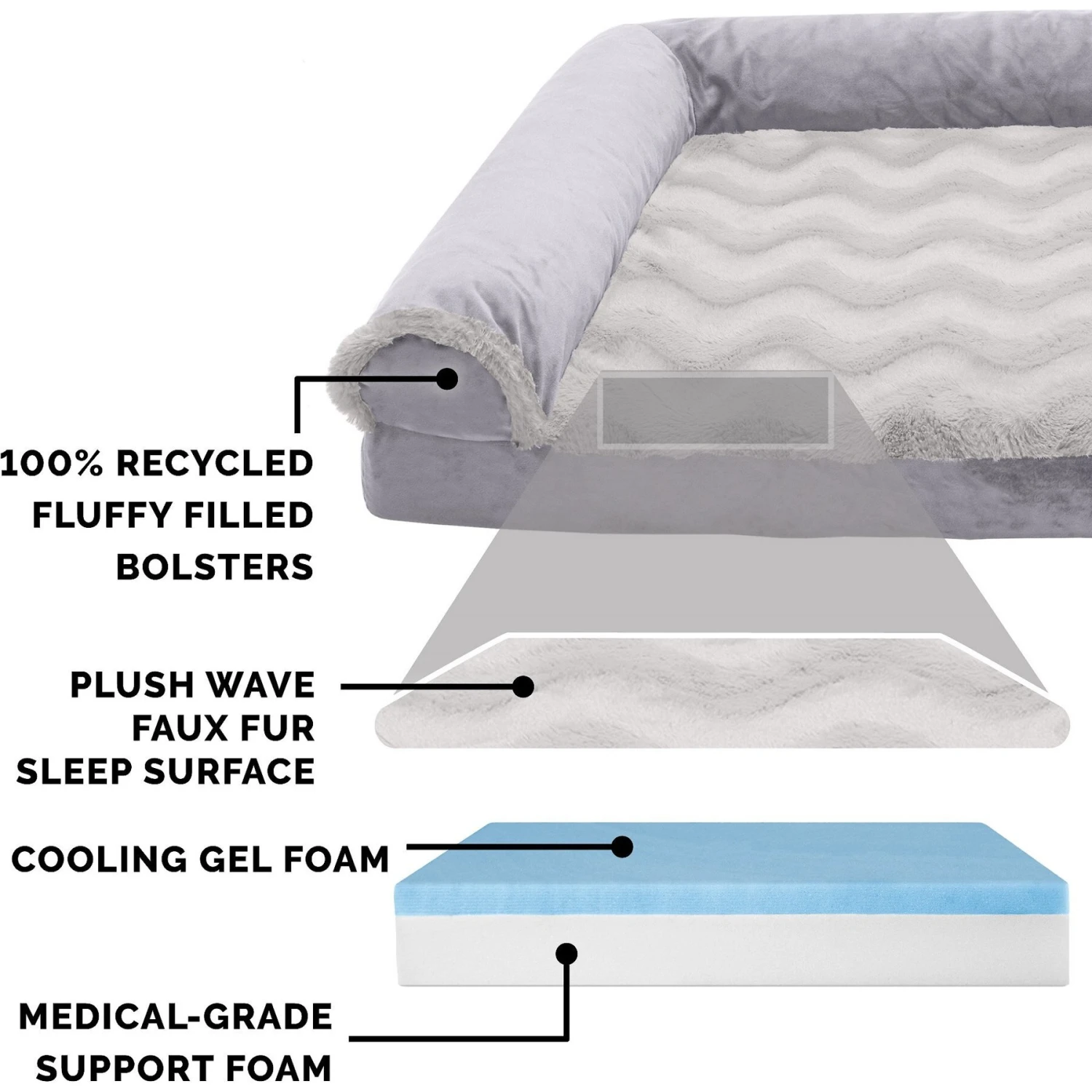 - This chaise-style bed is designed to both support and cool down your furry friend while he sleeps.