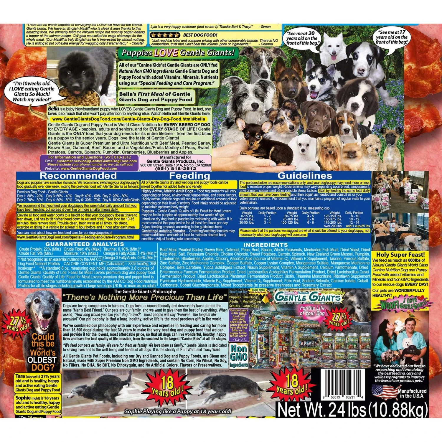 Gentle Giants Natural Non-GMO Dog & Puppy Beef & Bacon Dry Dog Food, 24-lb Bag
