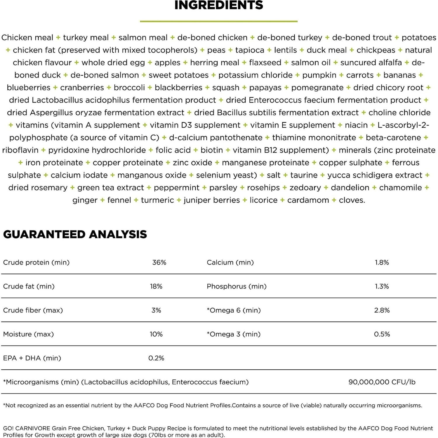 Go! Solutions Carnivore Grain-Free Chicken, Turkey + Duck Puppy Recipe Dry Dog Food