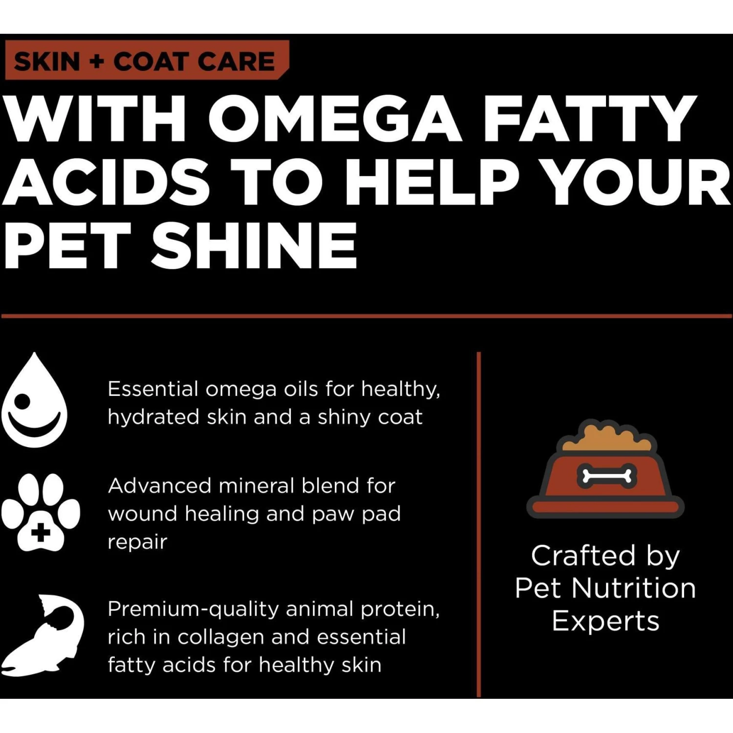 - Includes omega-3 fatty acids to help maintain healthy skin and a soft coat.