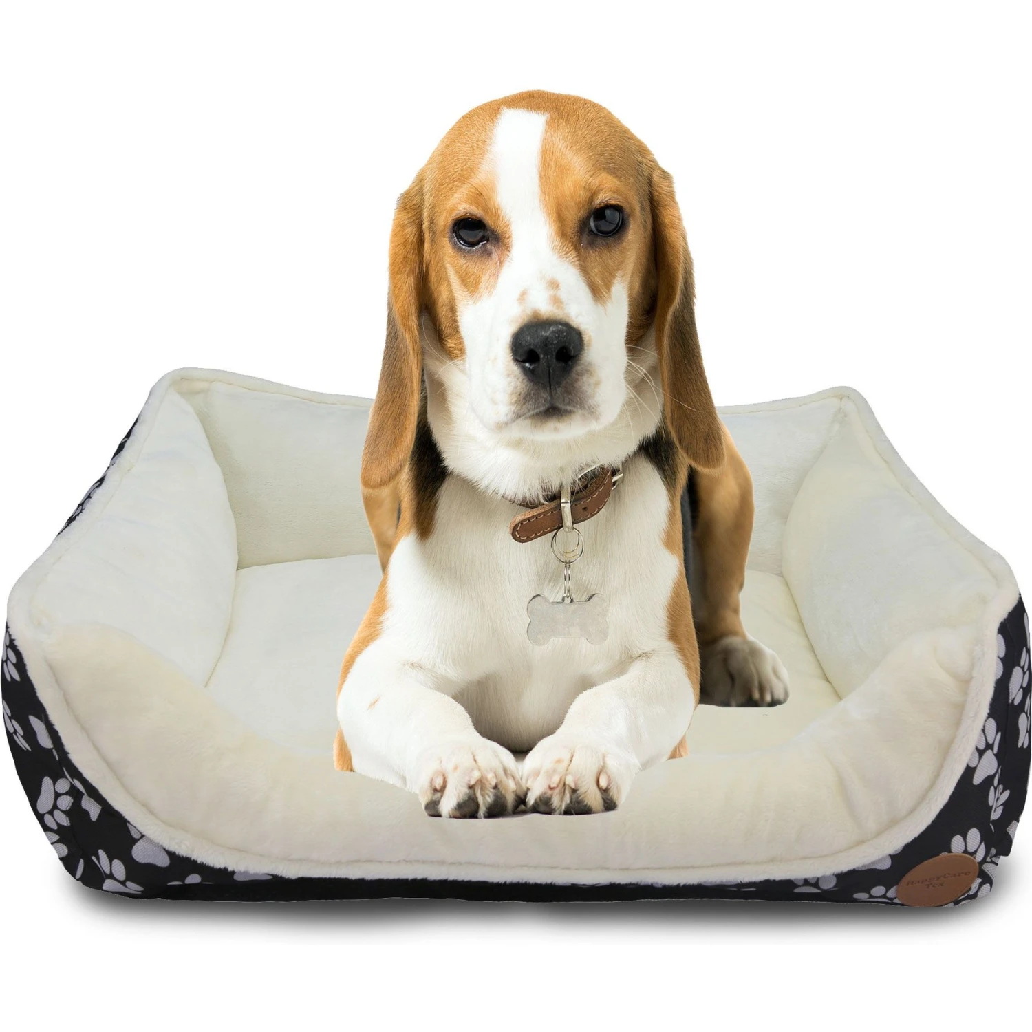 HappyCare Textiles Durable Printed Oxford Plush Bolster Cat & Dog Bed