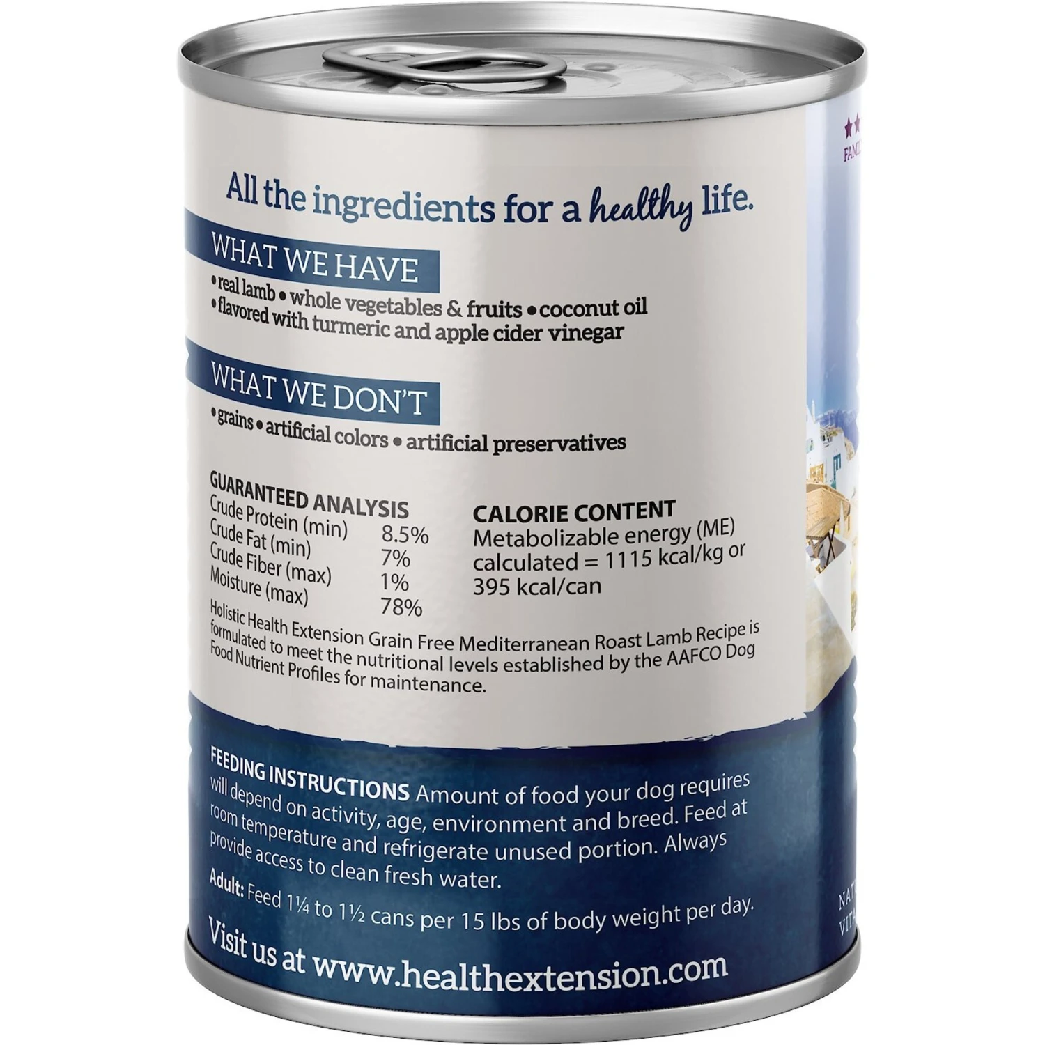 Health Extension Mediterranean Roast Lamb Recipe Grain-Free Wet Dog Food, 12.5-oz Can, Case Of 12