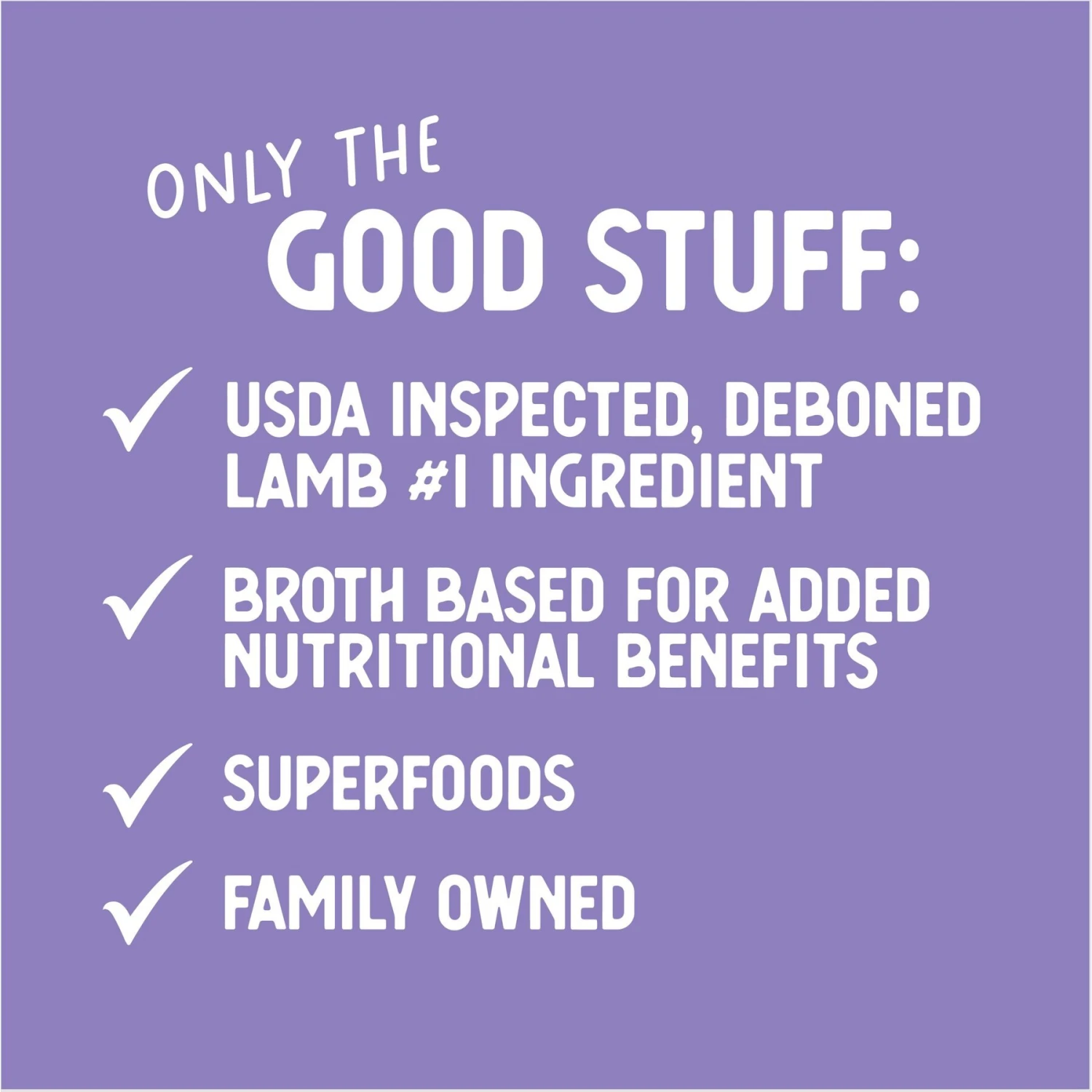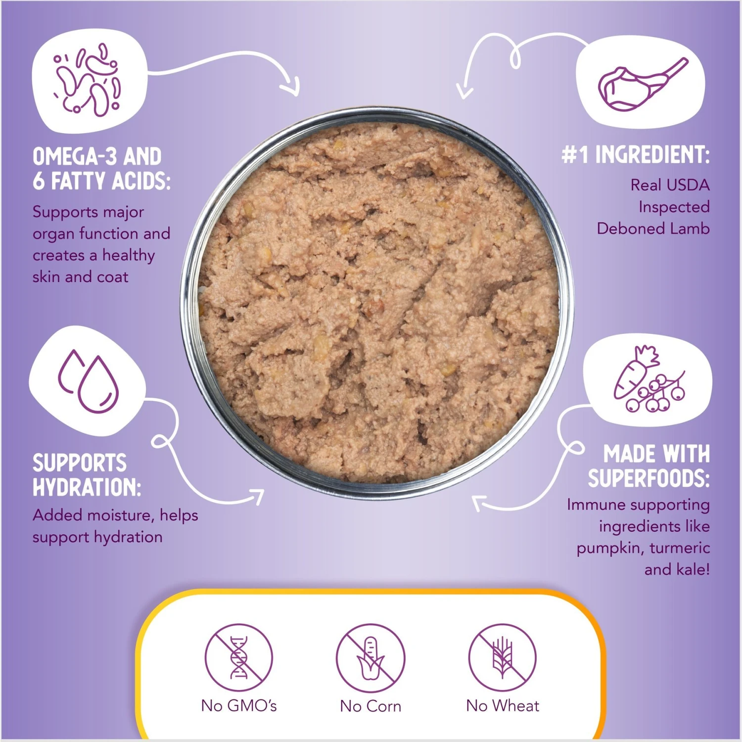- Grain-free, wet dog food made with delicious roast lamb––great for dogs with sensitivities or allergies to grain.