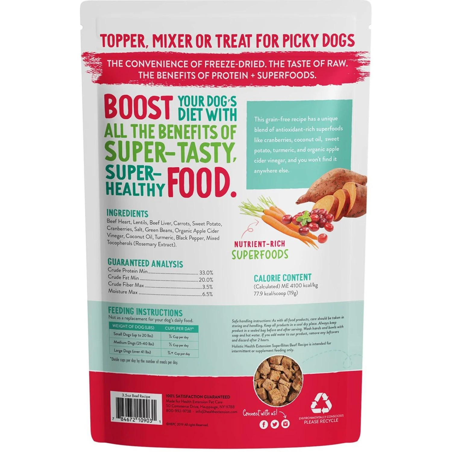 Health Extension Super Bites Beef Recipe Freeze-Dried Raw Dog Food Mixer