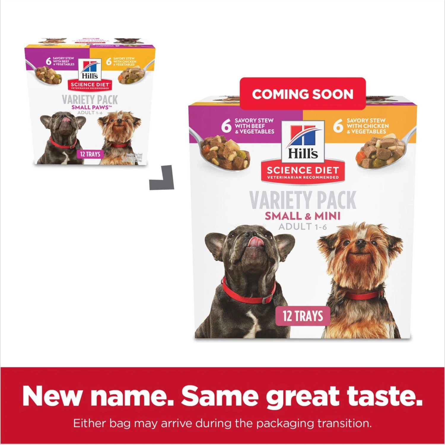 Hill’s Science Diet Adult Small Paws Chicken & Vegetables & Beef & Vegetables Variety Pack Wet Dog Food Trays