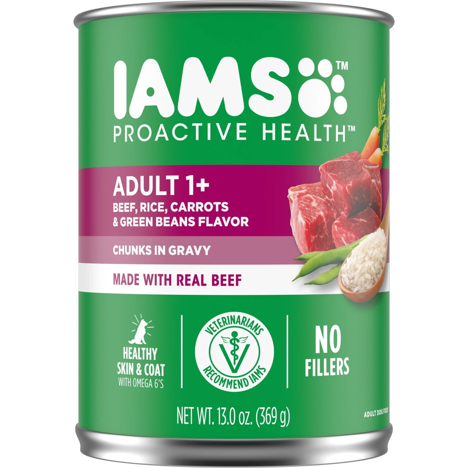 Iams ProActive Health Classic Ground With Chicken & Whole Grain Rice Adult Wet Dog Food & Iams ProActive Health Chunks In Gravy Beef, Rice, Carrots & Green Beans Flavor Adult Wet Dog Food