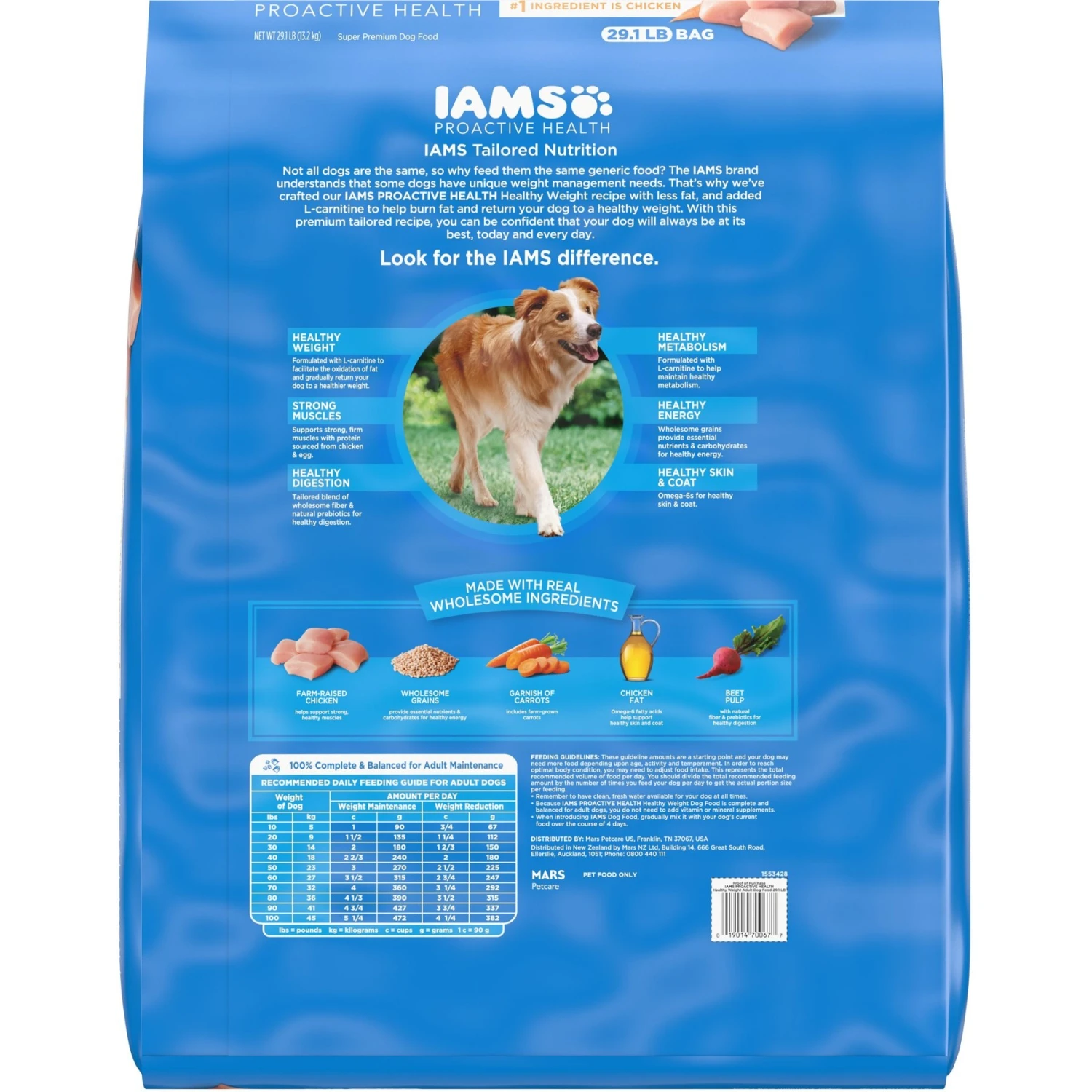 Iams ProActive Health Adult Healthy Weight Dry Dog Food, 29.1-lb bag—If your canine companion is struggling with weight issues or weight gain, try IAMS ProActive Health Adult Healthy Weight Dry Dog Food! This recipe is designed to help adult dogs maintain a healthy weight. It’s crafted with farm-raised chicken, a premium-quality protein that promotes strong muscles, and has 17% less fat than the IAMS Minichunks recipe (sold separately). This canine kibble promotes healthy digestion with a blend of fibers and natural prebiotics. Plus, it supports a healthy metabolism with L-carnitine!