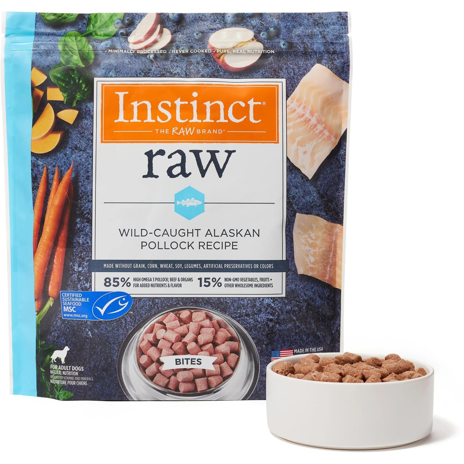 Instinct Frozen Raw Bites Grain-Free Wild-Caught Alaskan Pollock Recipe Fresh Dog Food, 5.4-lb Bag