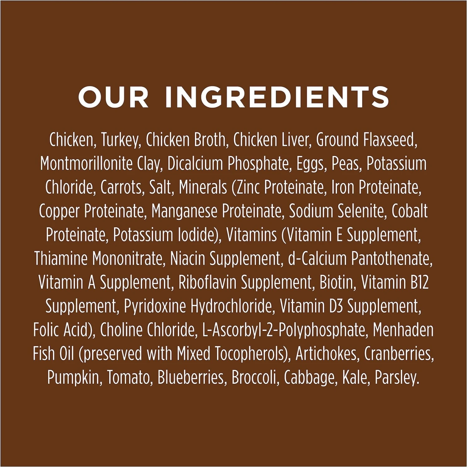 - Made with 95% chicken, turkey and chicken liver; 5% vegetables, fruits and other wholesome ingredients; and 0% grain.