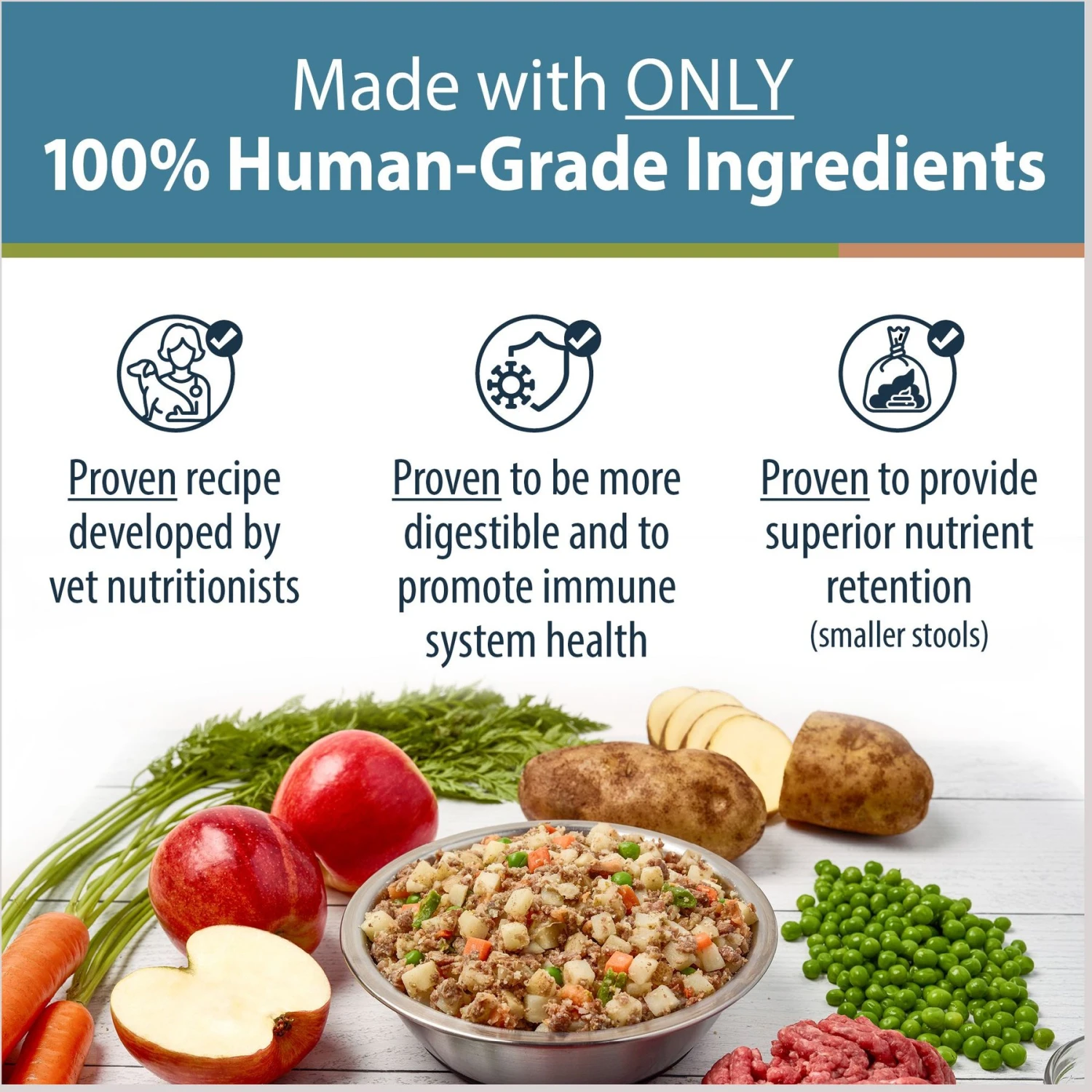 - Fresh Food That Delivers Life-Changing Nutrition—crafted with fresh, human-grade ingredients, including ground beef, russet potatoes, sweet potatoes, carrots, green beans, green peas and apples. Along with 100% human grade ingredients, this recipe contains the JFFD Omega Plus supplement—a fish oil rich in omega fatty acids, promoting skin and coat health.