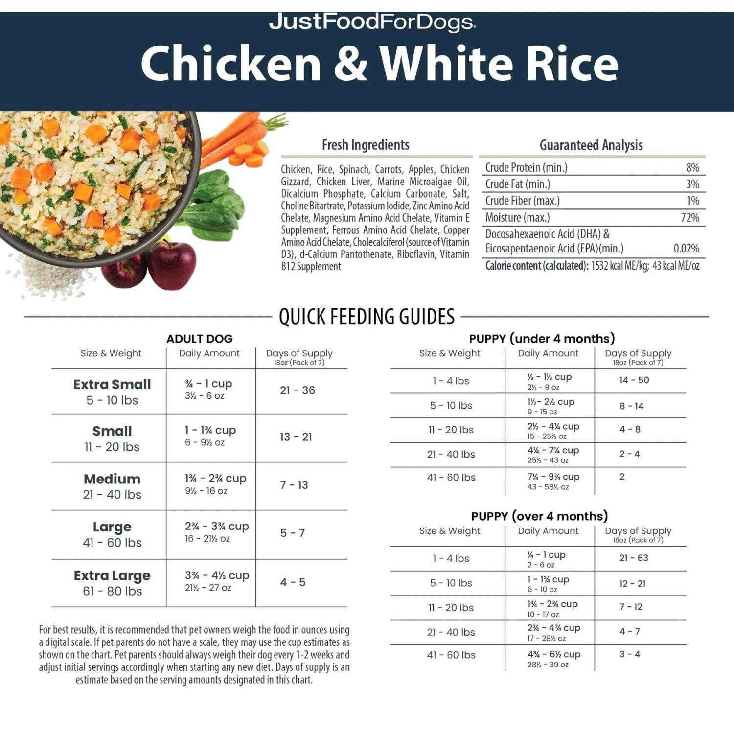JustFoodForDogs Chicken & White Rice Recipe Frozen Human-Grade Fresh Dog Food