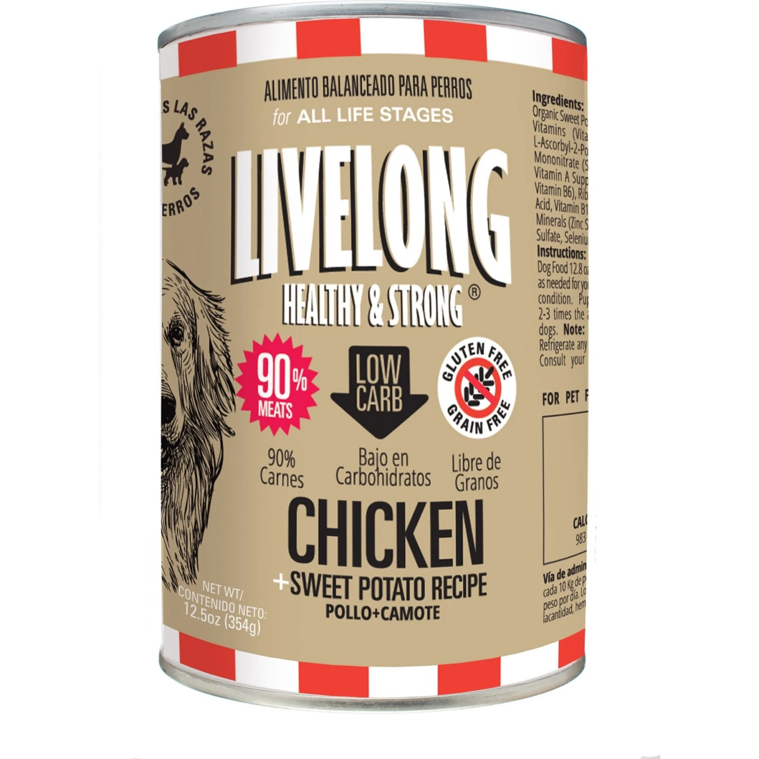 Livelong Healthy & Strong Chicken & Sweet Potato Recipe Wet Dog Food, 12.5-oz Can, Case Of 12