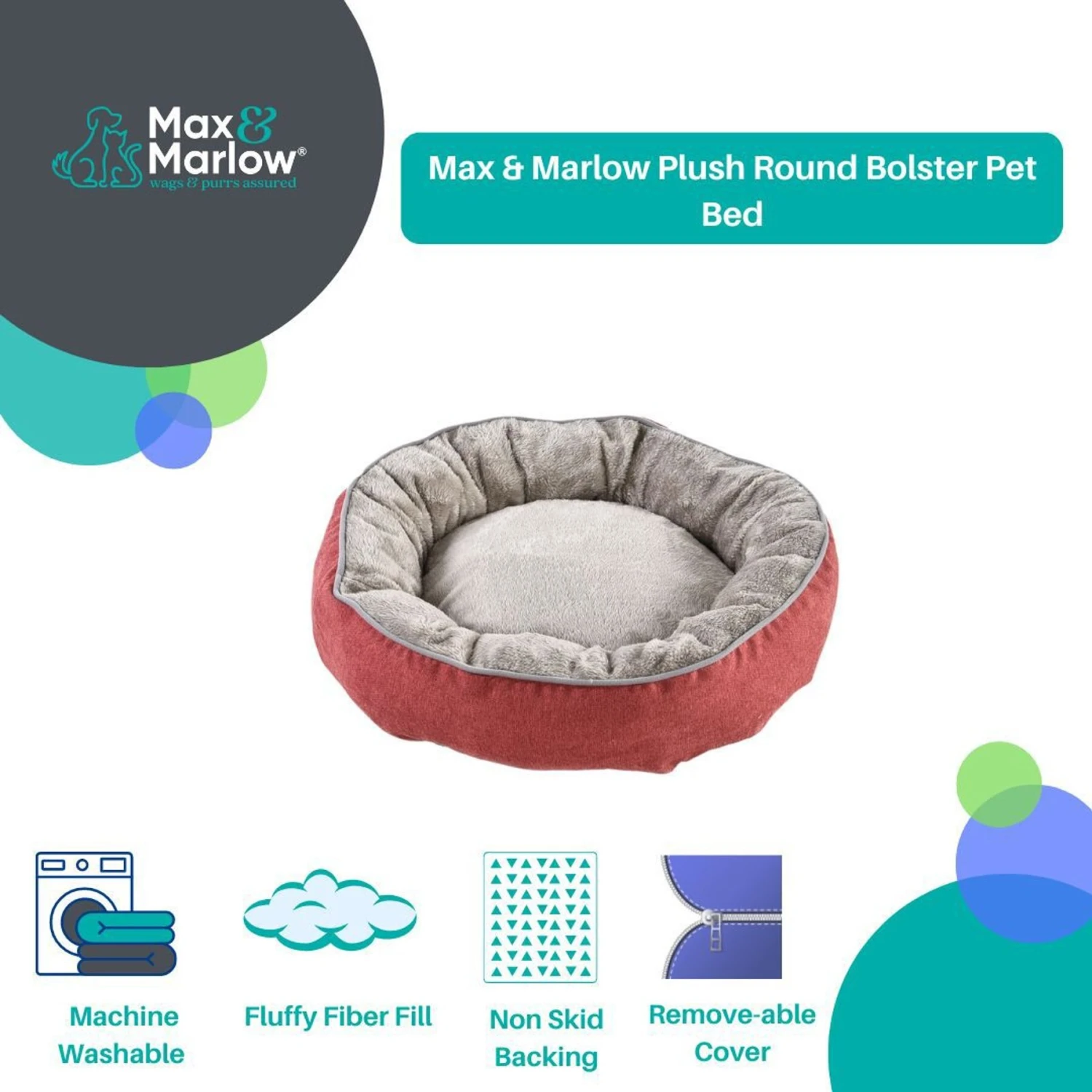 Be the first to review “Max & Marlow Plush Round Bolster Cuddler Cat & Dog Bed” Cancel reply