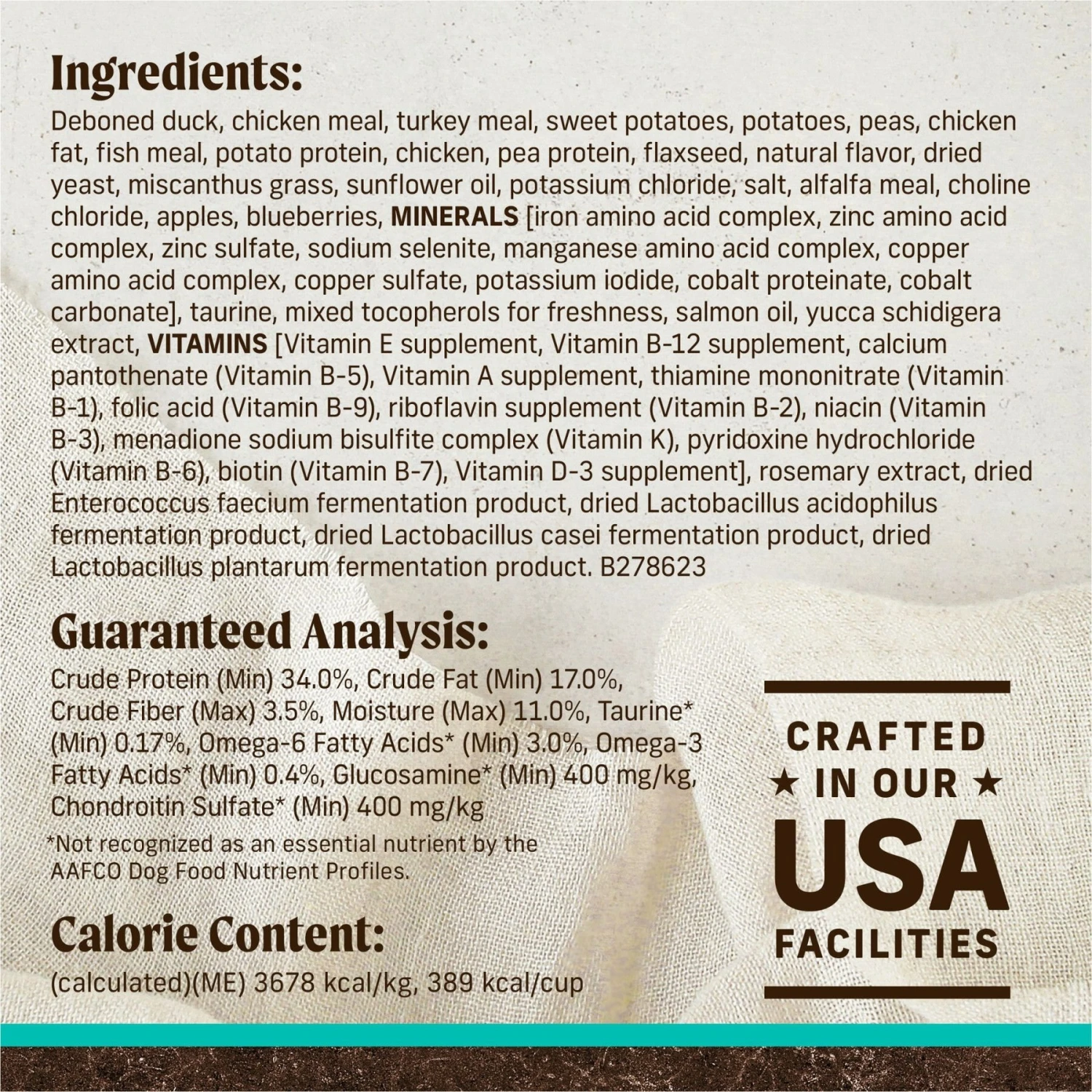 | Flavor | Real Bison, Beef + Sweet Potato, Real Duck + Sweet Potato, Real Texas Beef + Sweet Potato, Real Salmon + Sweet Potato, Real Lamb + Sweet Potato, Real Chicken + Sweet Potato |