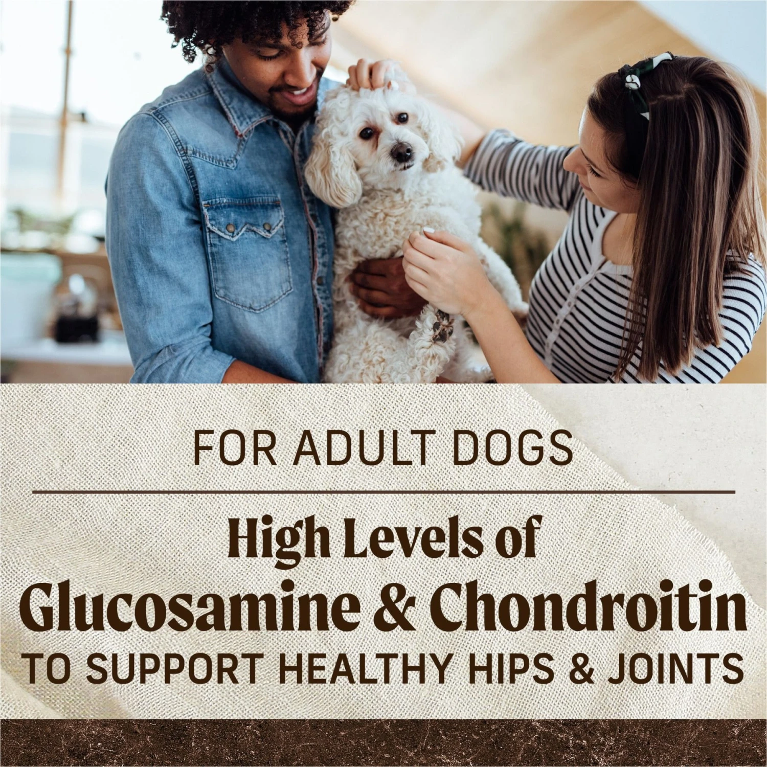 - Contains omega-3 and -6 fatty acids to nourish the skin and coat plus glucosamine and chondroitin for healthy hips and joints.