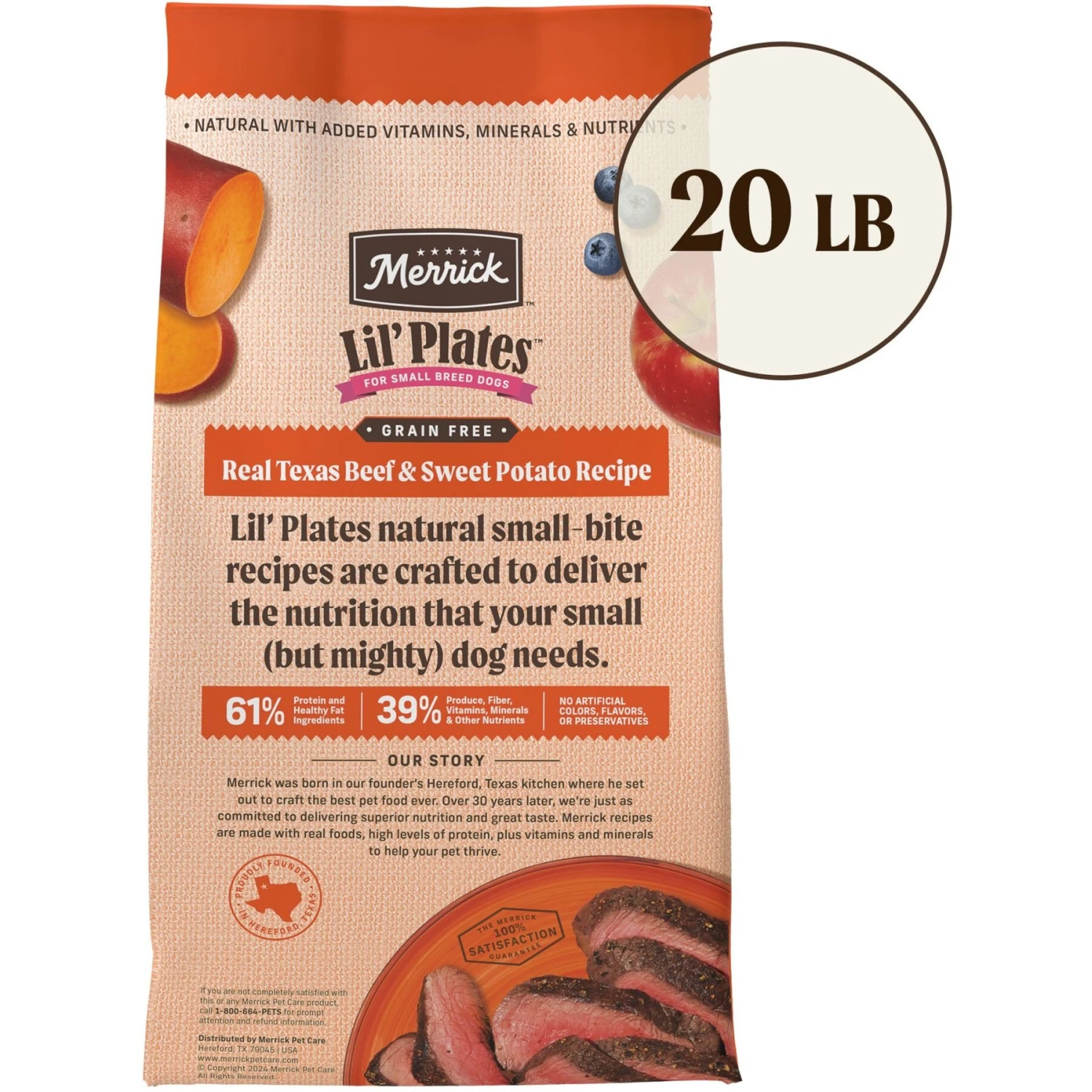 Merrick Lil’ Plates Grain-Free Chicken-Free Real Texas Beef + Sweet Potato Recipe Small Breed Dry Dog Food