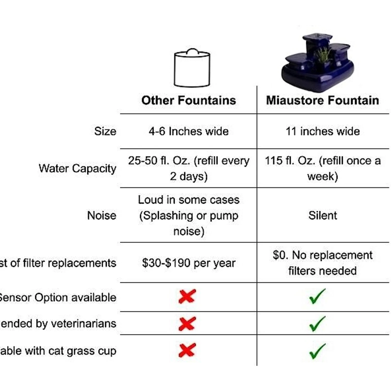 - Ceramic fountain requires no filter, so you don’t have to worry about remembering to replace one.
