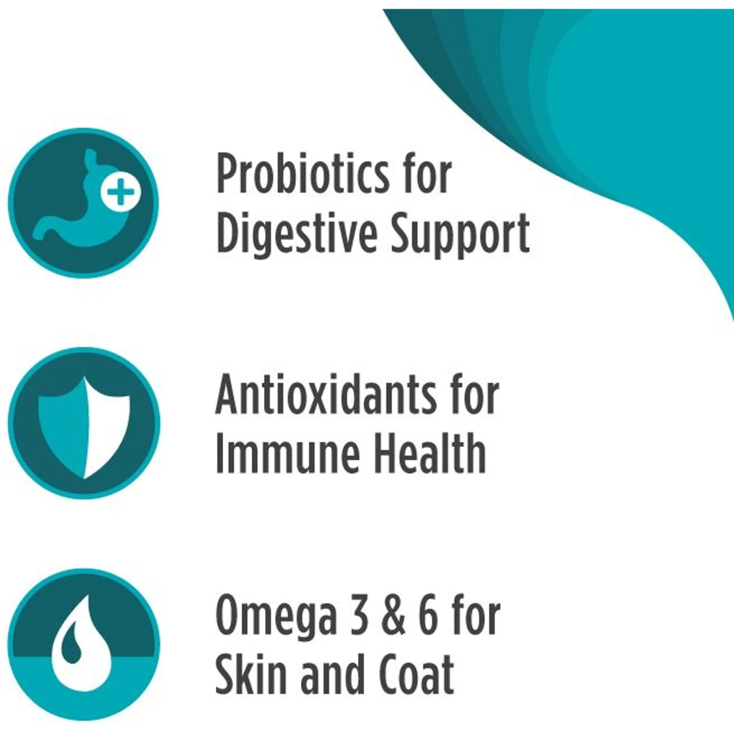 - Omega-3 and omega-6 fatty acids promote a shiny coat and healthy skin.