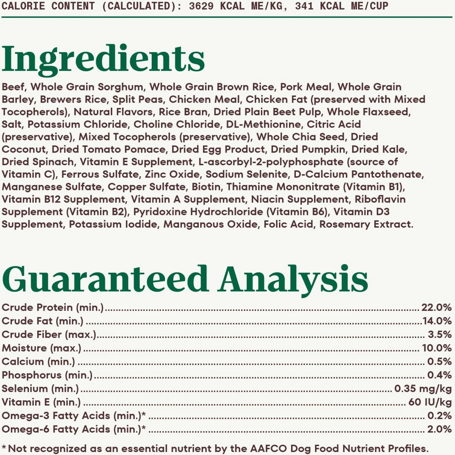 | Flavor | Lamb & Brown Rice, Venison Meal & Brown Rice, Beef & Brown Rice, Chicken & Brown Rice |