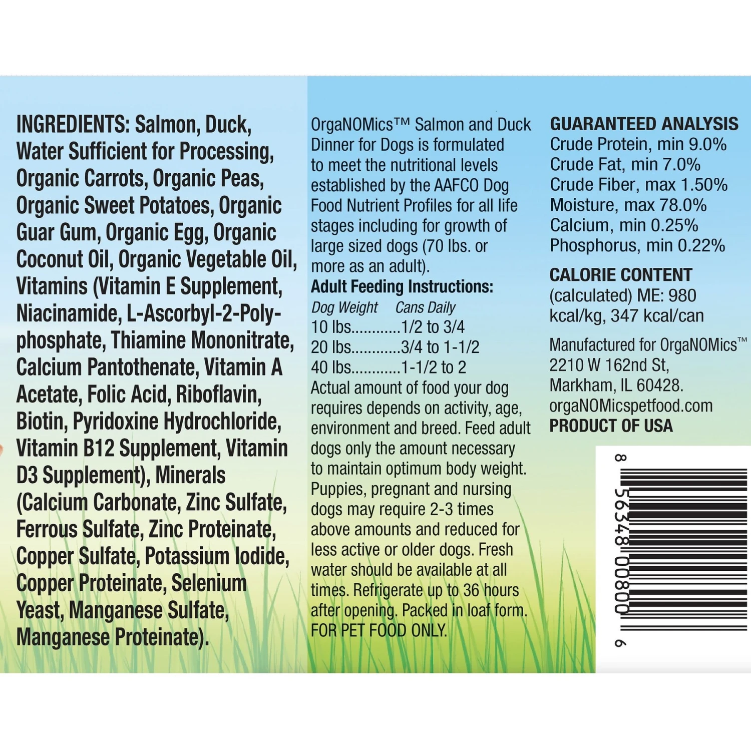 - Organic Carrots, Organic Peas, Organic Sweet Potatoes, Organic Guar Gum, Organic Egg, Organic Coconut Oil, Organic Vegetable Oil enhance this diet.