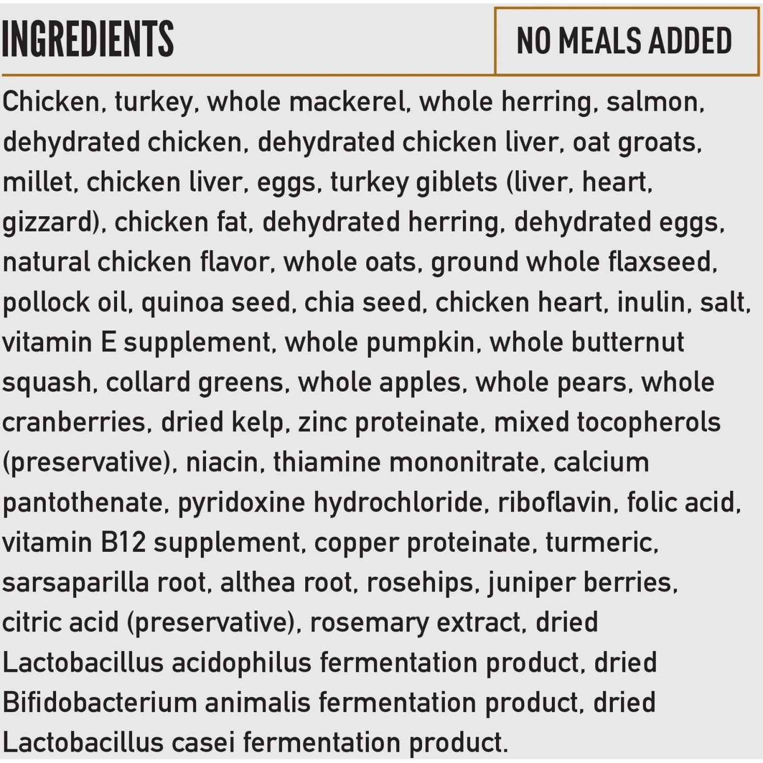 - Contains up to 90% poultry and fish ingredients, including WholePrey inclusions like poultry and organs to mimic what your puppy’s ancestors consumed in the wild.