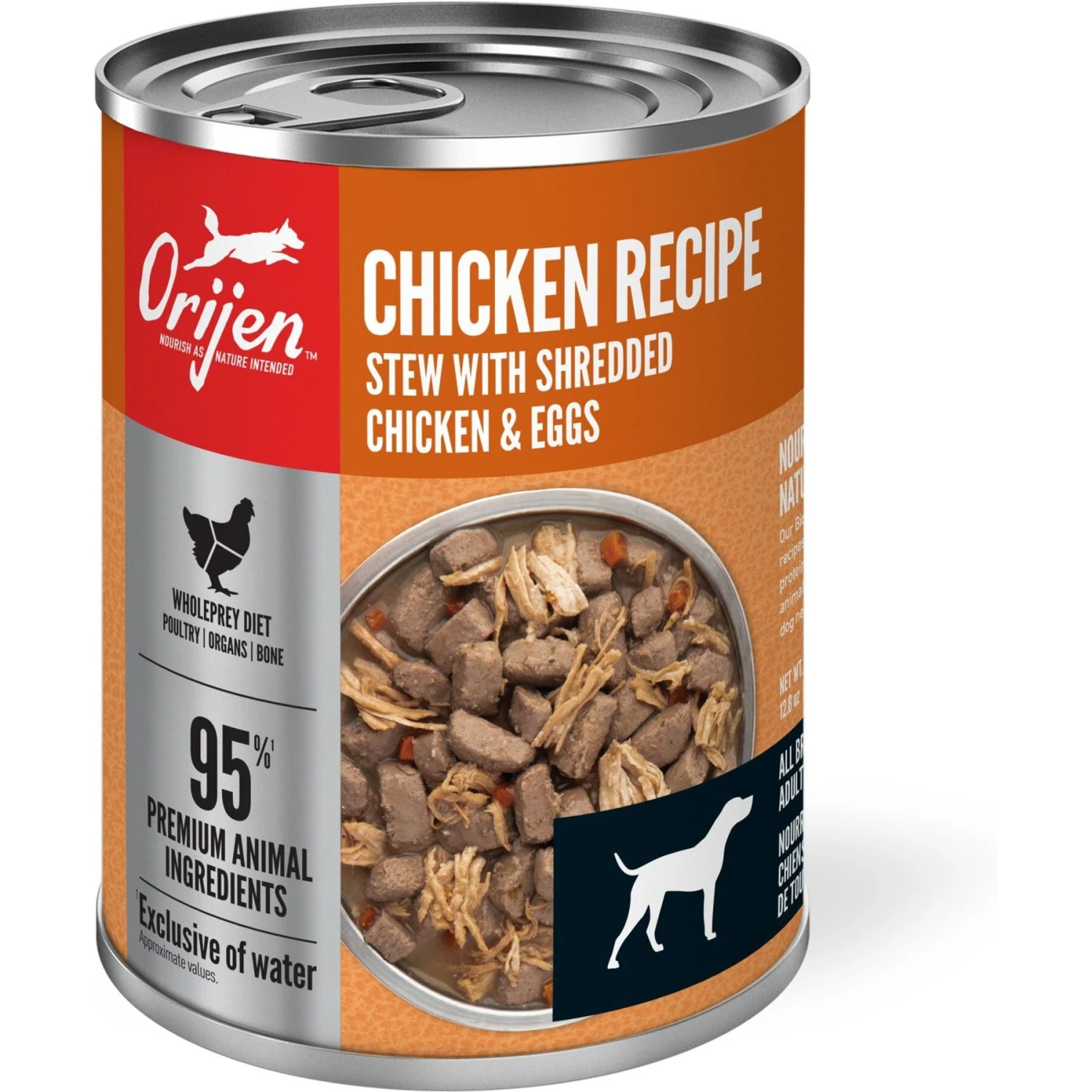 ORIJEN Real Meat Shreds Chicken Recipe Stew Grain-Free Wet Dog Food, 12.8-oz Can, Case Of 12