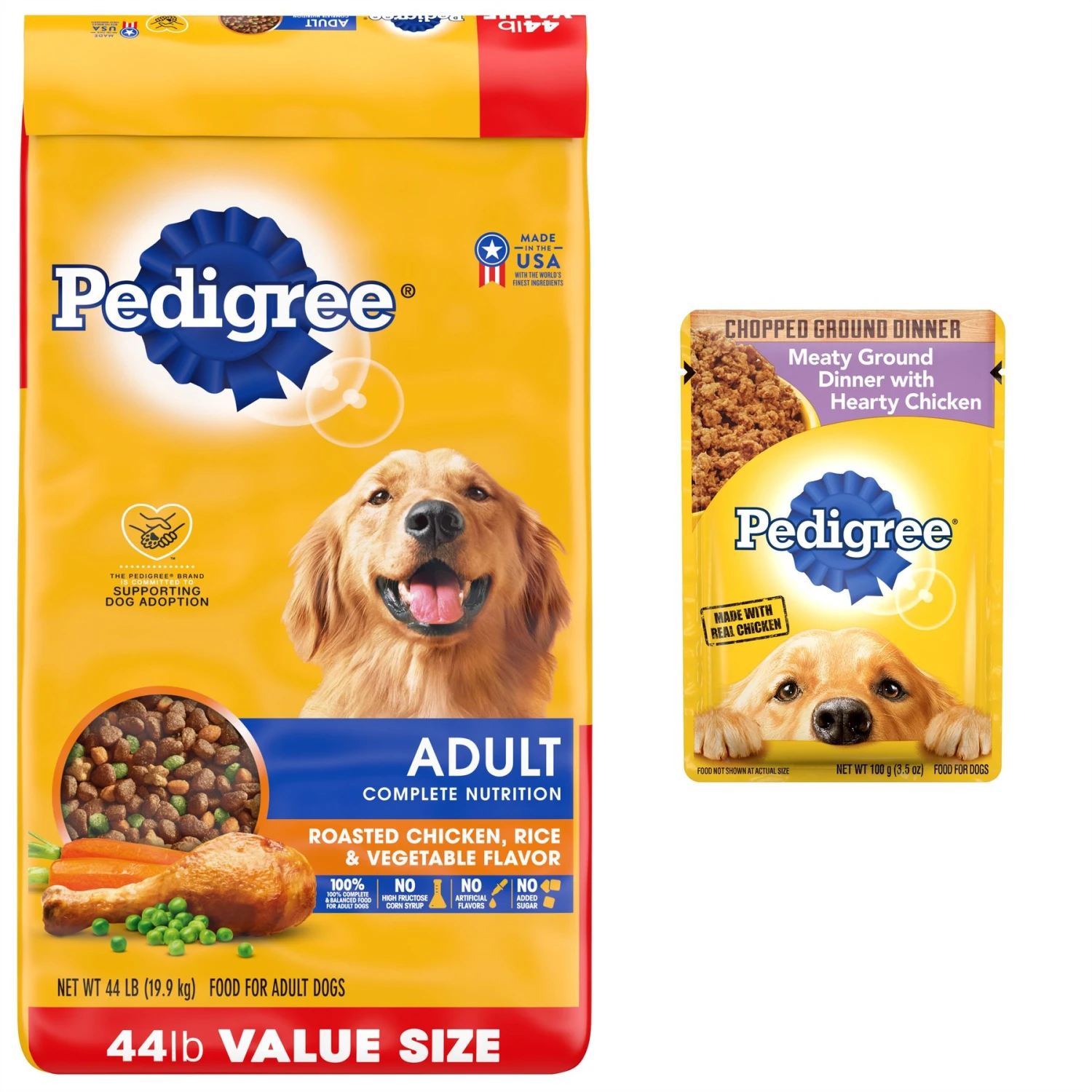 Pedigree Chopped Meaty Ground Dinner With Hearty Chicken Adult Wet Dog Food & Pedigree Complete Nutrition Roasted Chicken, Rice & Vegetable Flavor Dog Kibble Adult Dry Dog Food