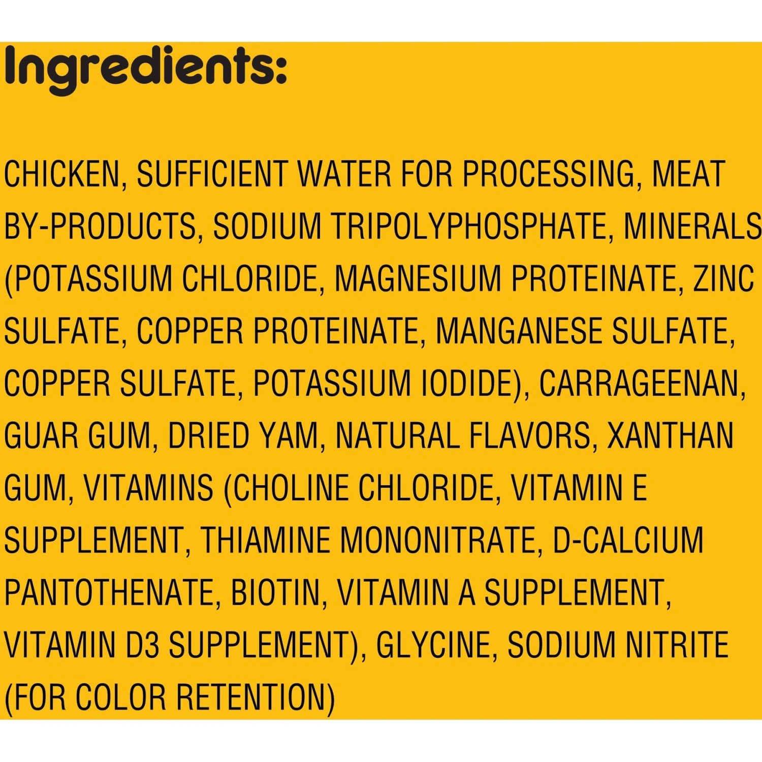 - Features a meaty ground texture with an irresistible taste of chicken in easy-tear pouches.