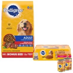 Pedigree Complete Nutrition Grilled Steak & Vegetable Flavor Dog Kibble Adult Dry Dog Food & Pedigree Chopped Ground Dinner Chicken With Beef Adult Canned Wet Dog Food Variety Pack