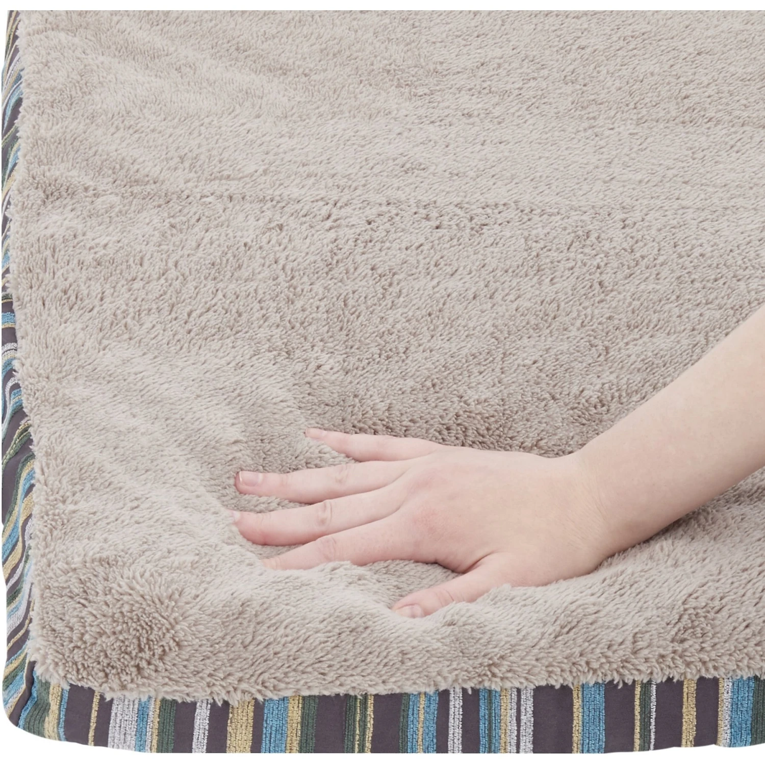 - Faux suede and micro terry cover for added comfort.