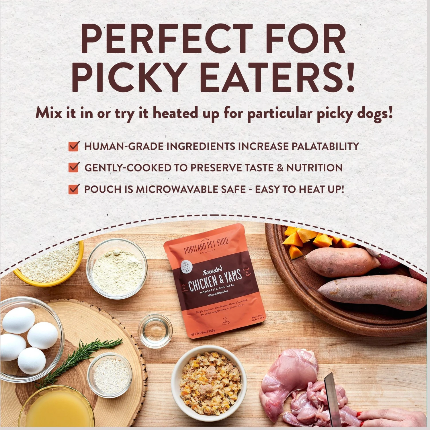 Portland Pet Food Company Tuxedo’s Chicken & Yams Homestyle Wet Dog Food Topper, 9-oz Pouch, Case Of 4